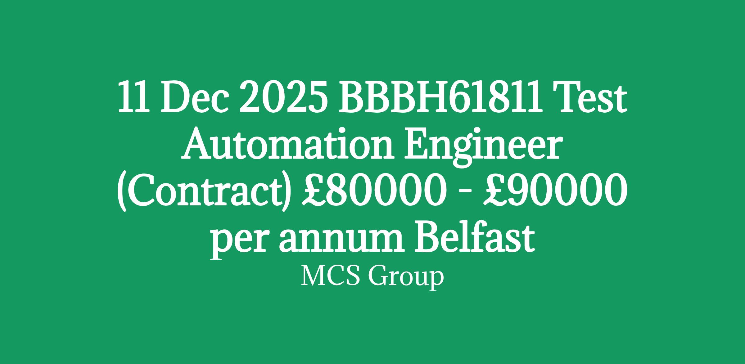 MCS Group is looking for a Contract Test Automation Engineer to play a key role in building out a brand-new test automation capability. This is a rare opportunity to join at the ground floor of a greenfield testing initiative, shaping the end-to-end testing framework for an engineering function operating at scale. This is a superb opportunity to secure a long-term contract in the Northern Ireland market.
