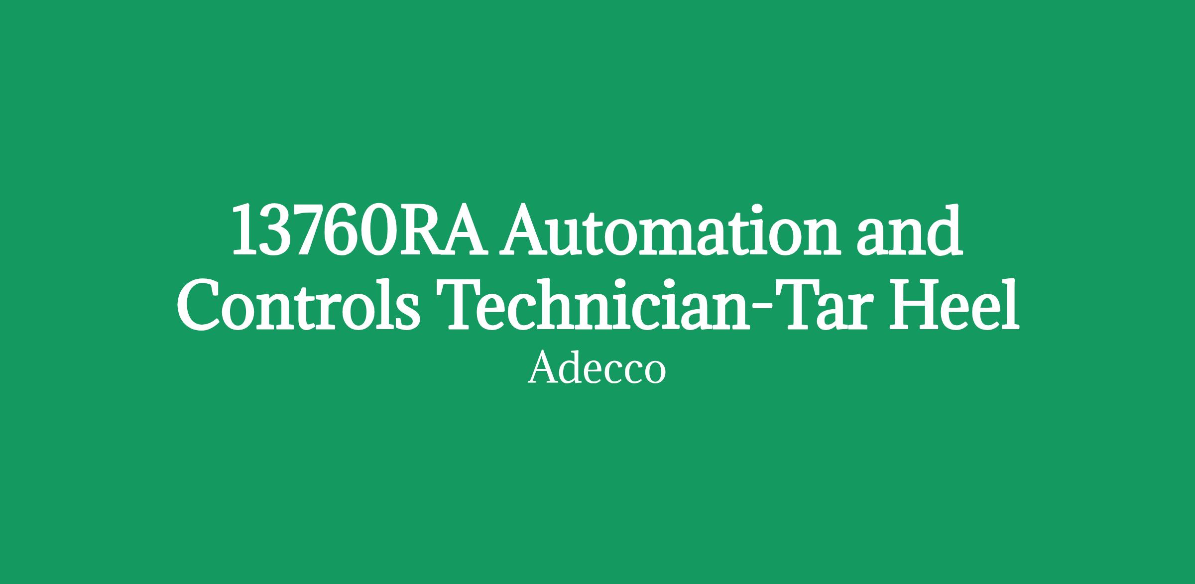 Automation and Controls Technician Food Manufacturing On-site (Tar Heel, NC) Schedule: Monday-Friday, 6:00 PM - 6:00 AM