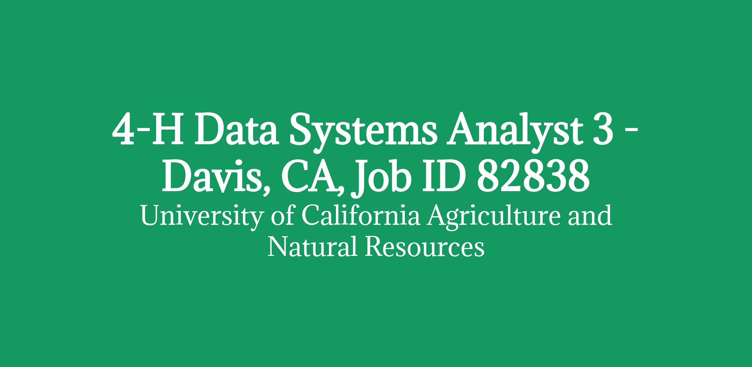 4-H Data Systems Analyst 3 - Davis, CA, Job ID 82838
