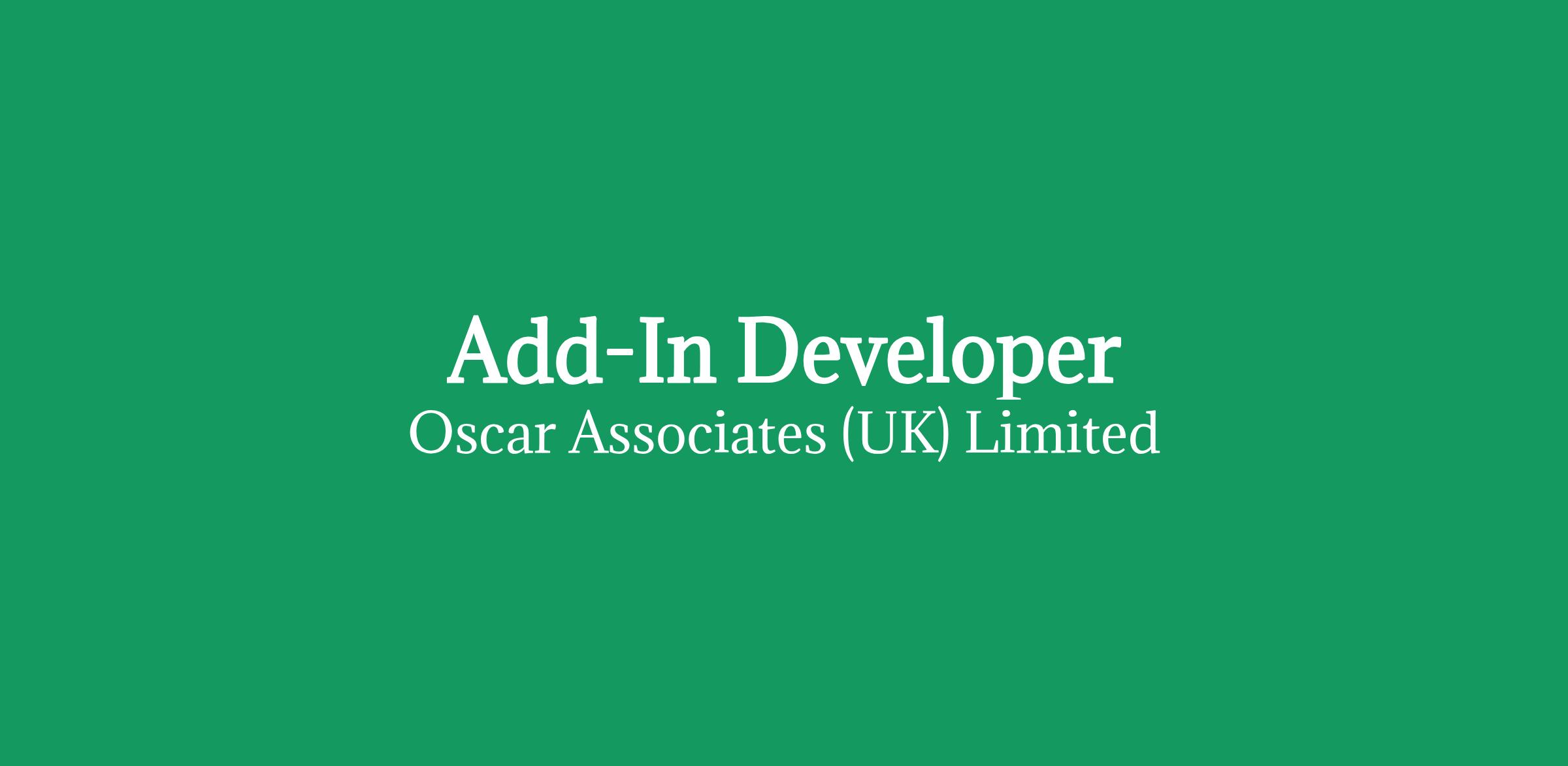 Add-In Developer (Office.js) Hybrid London / Sheffield 10 Month Contract £500 - £550 inside IR35 Outlook Add Ins
