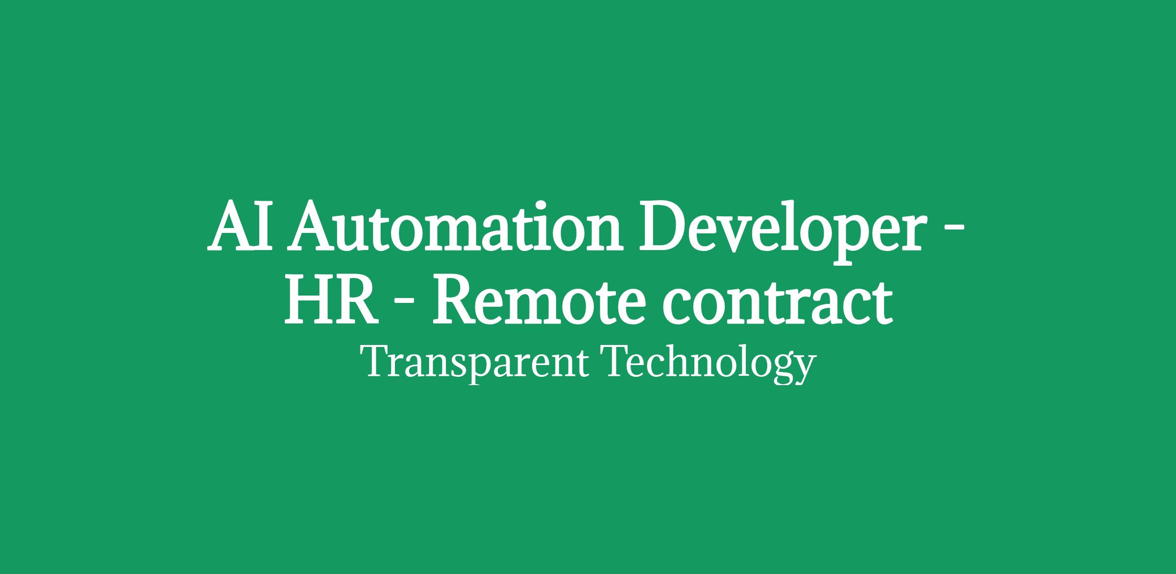 AI Automation Developer - Human Resources Fully Remote Project Contract (Permanent Potential) WealthTech - £350 p/d outside IR35