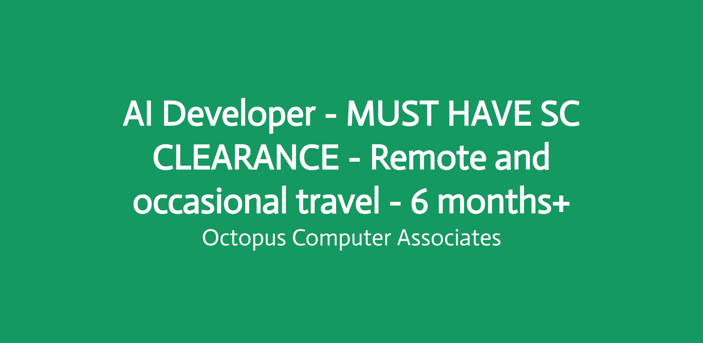 AI Developer - MUST HAVE SC CLEARANCE - Remote and occasional travel - 6 months+