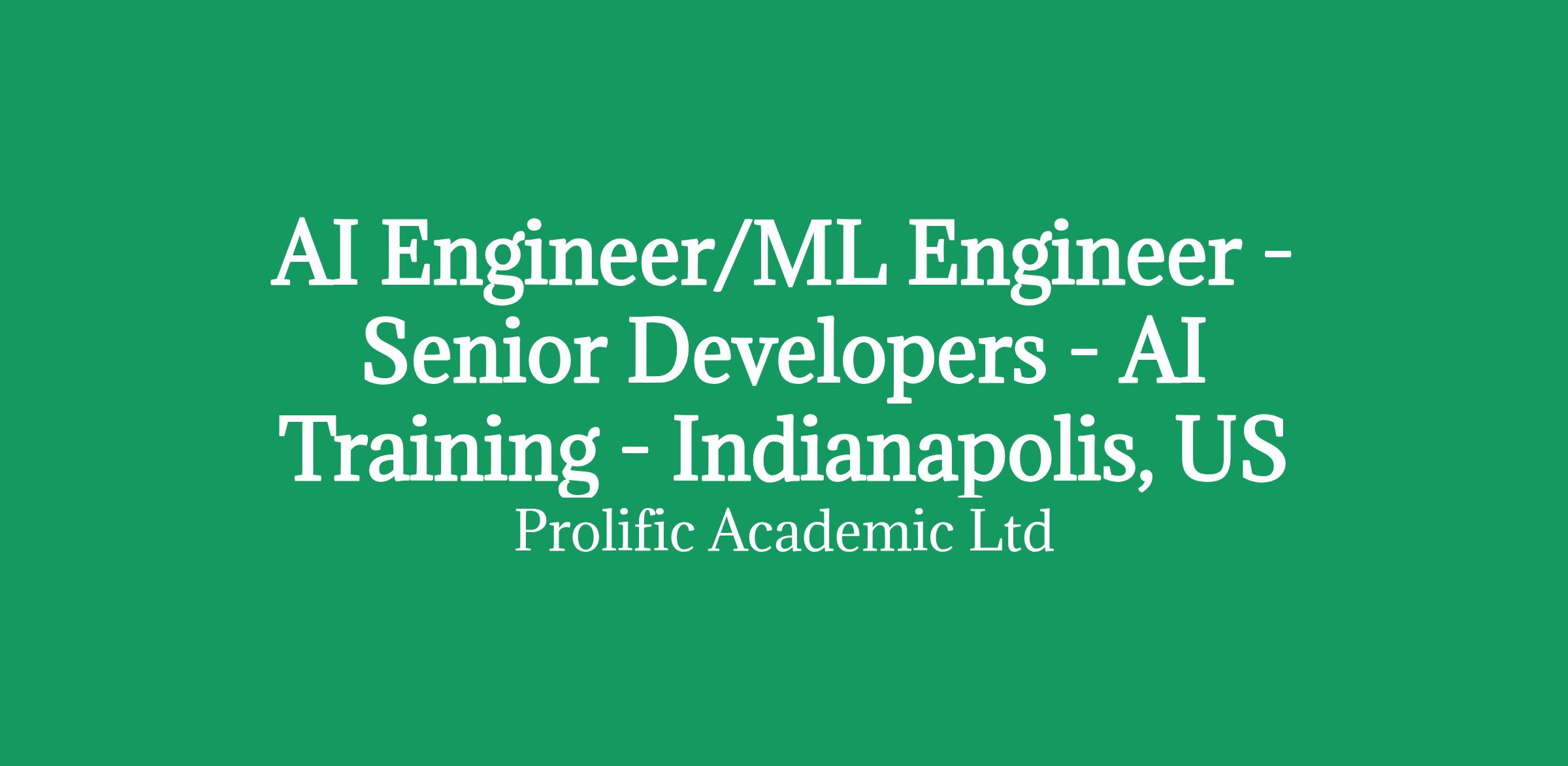 AI Engineer/ML Engineer - Senior Developers - AI Training - Indianapolis, US