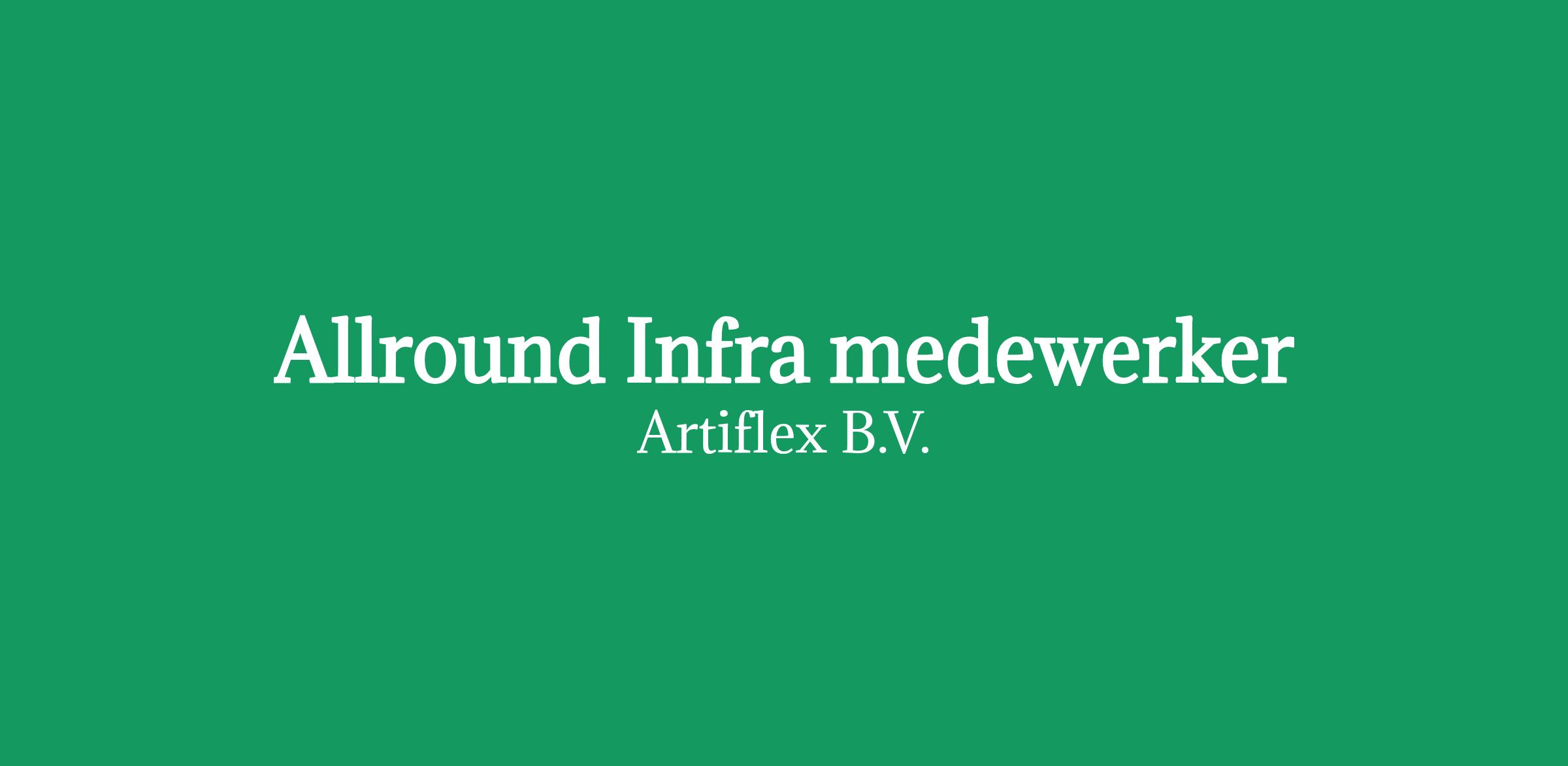 Solliciteer direct op deze vacature Allround Infra medewerker. Stuur een mail of je cv naar of reageer via de website. Vragen over deze vacature of benieuwd naar de mogelijkheden? Je kunt Artiflex bellen op 073- of bereiken via WhatsApp op 06-.