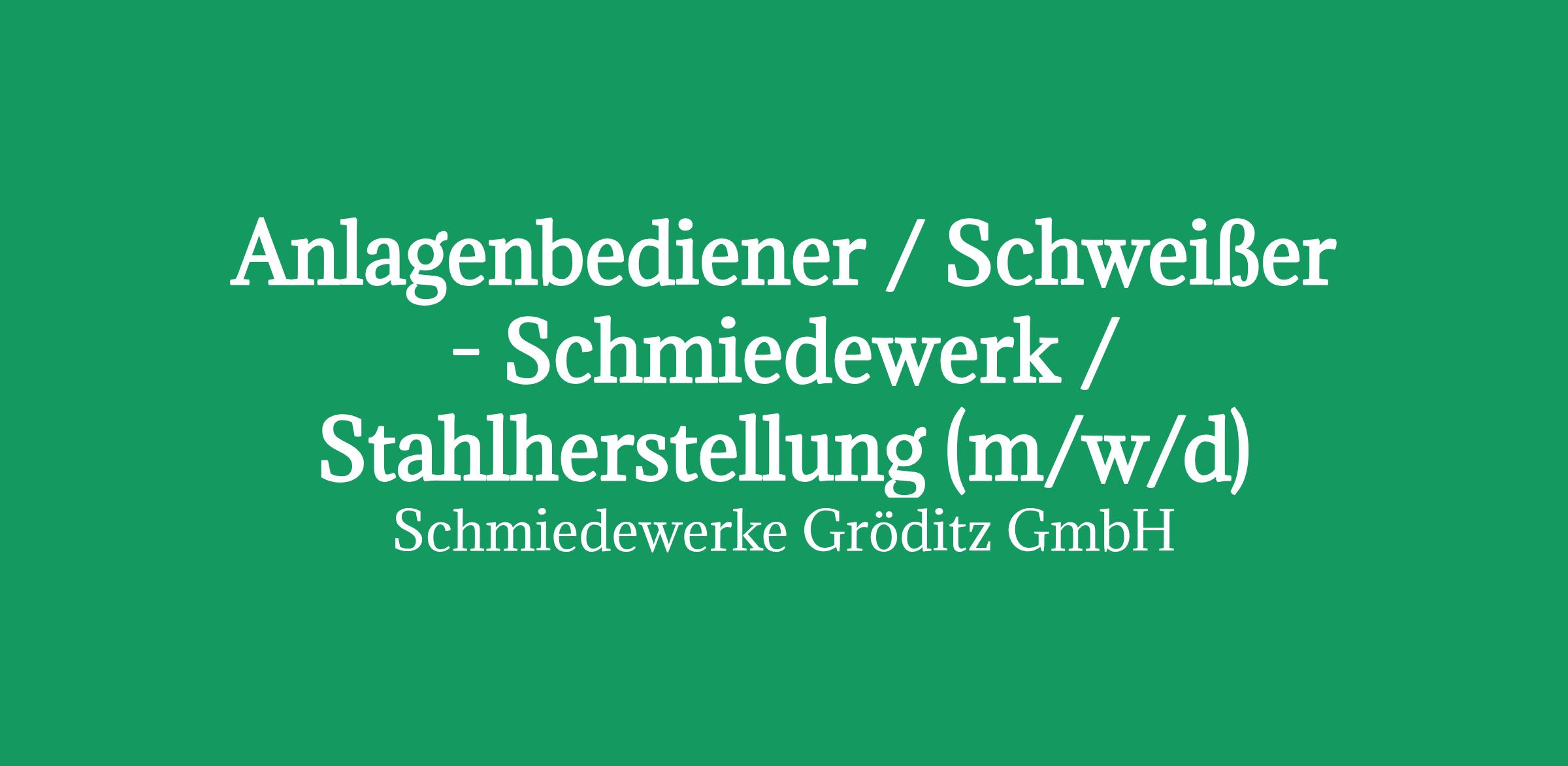 Anlagenbediener / Schweißer - Schmiedewerk / Stahlherstellung (m/w/d)