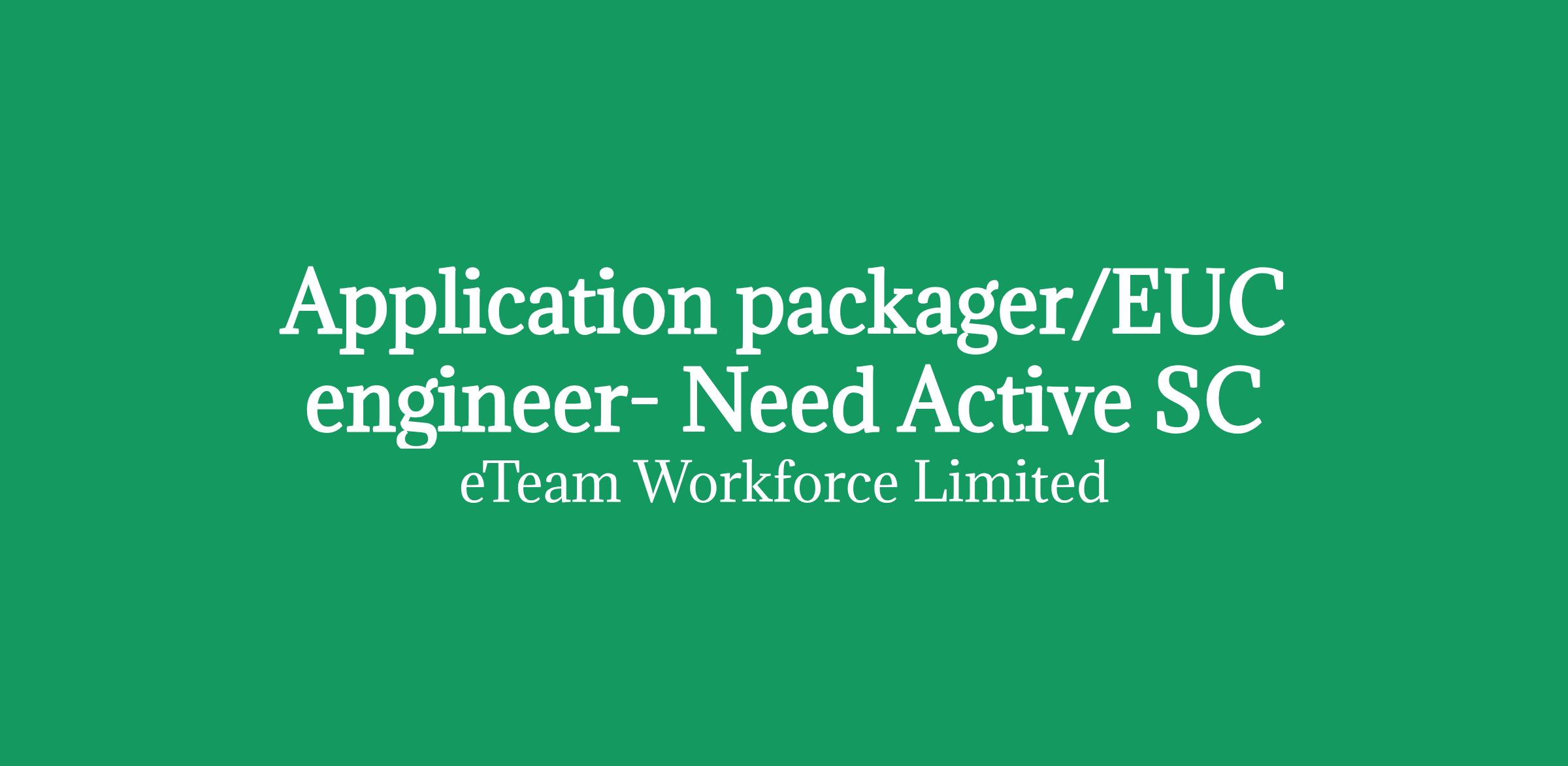 Role Title: Application packager/EUC engineer- Need Active SC