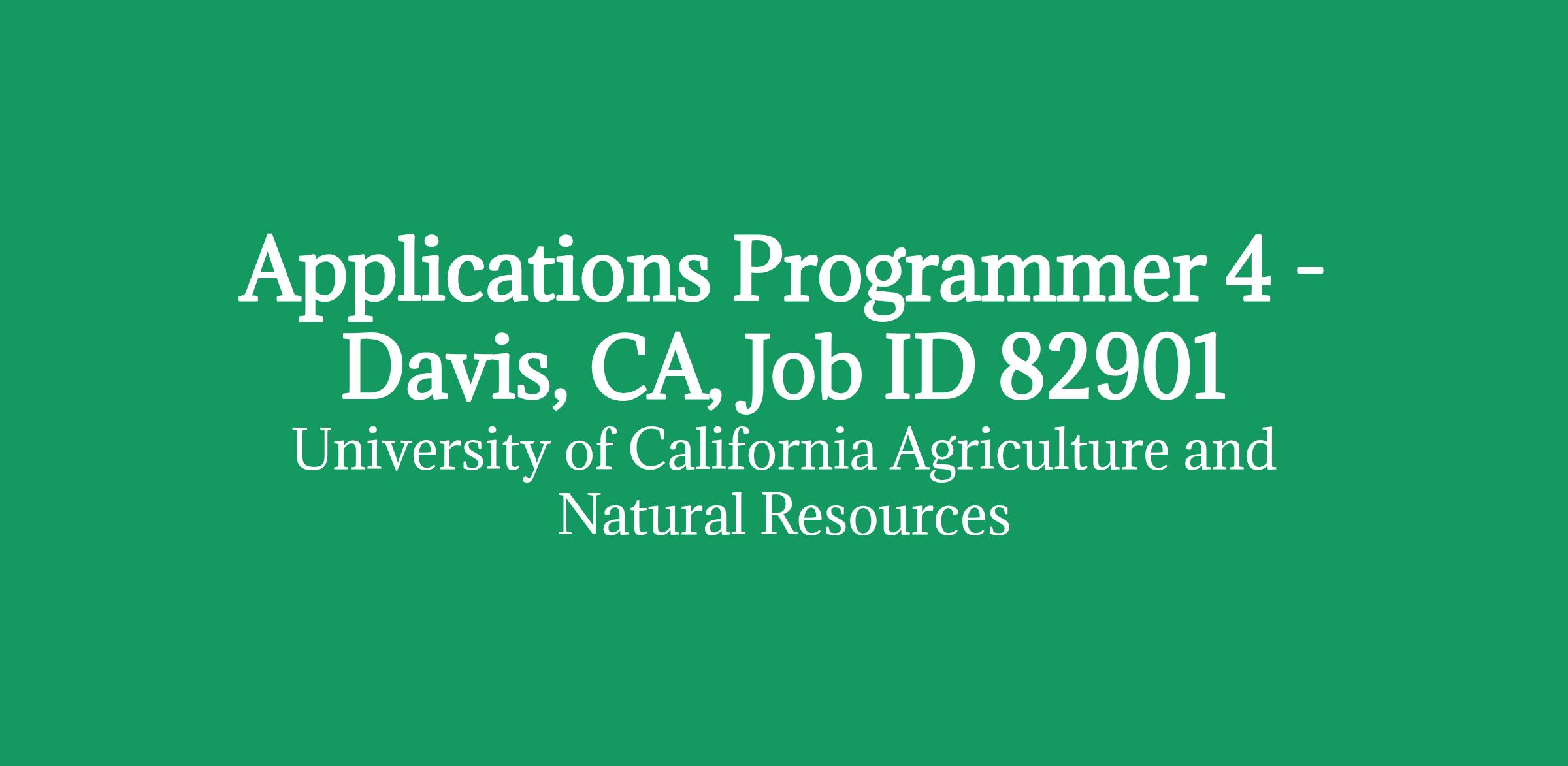 Applications Programmer 4 - Davis, CA, Job ID 82901
