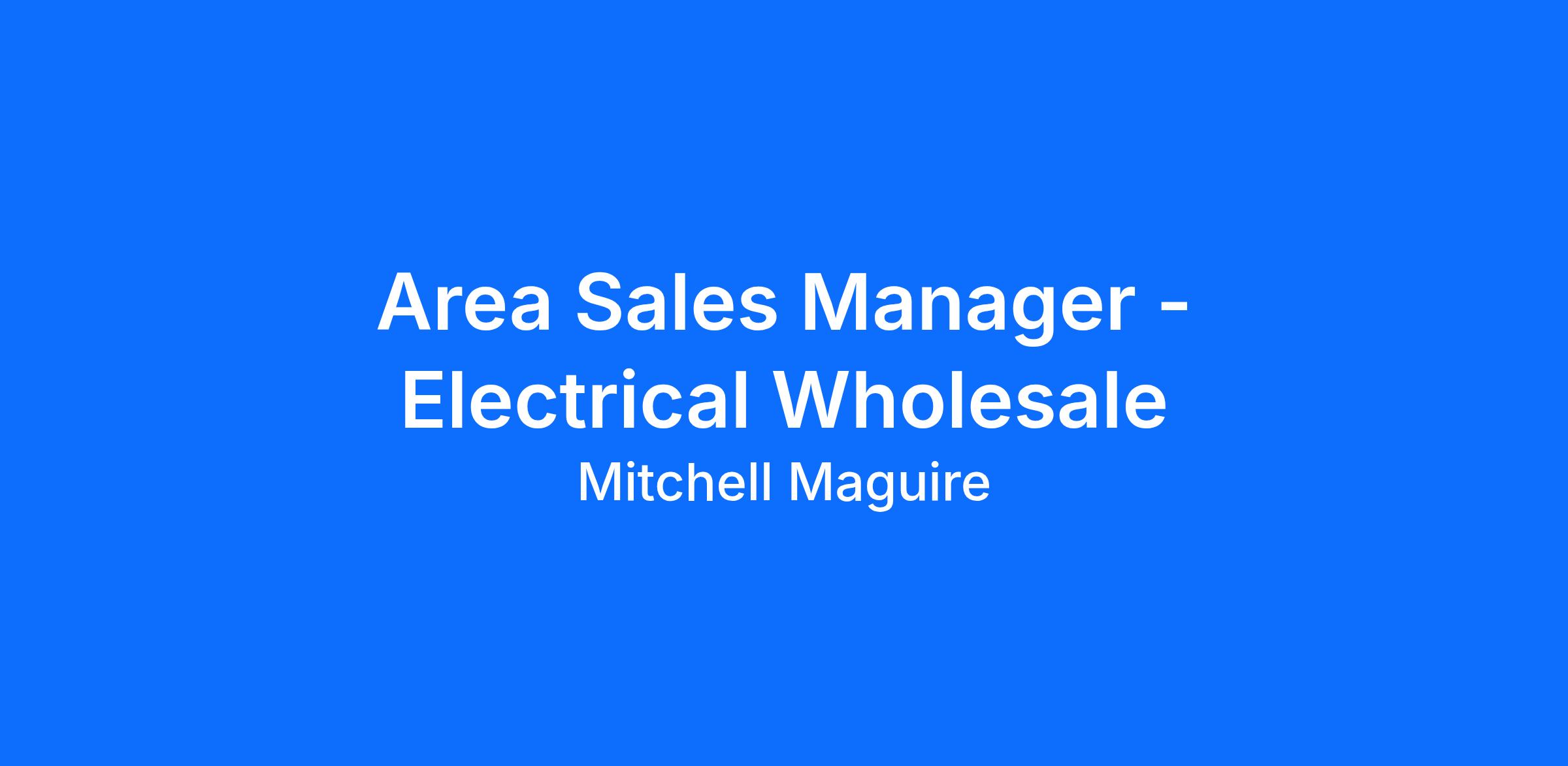 Job Title: Area Sales Manager Electrical Wholesale
