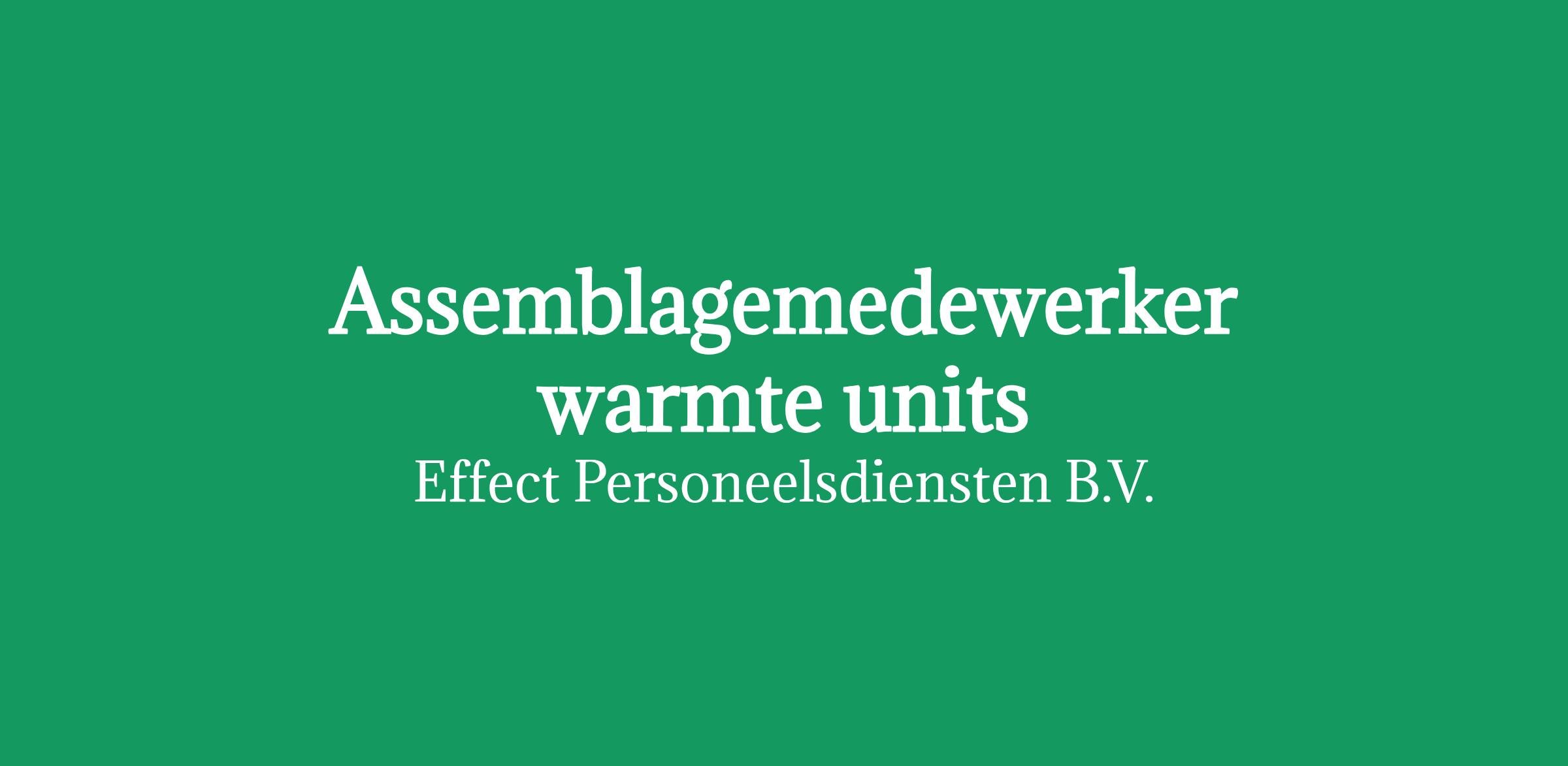 Ben jij al een tijdje op zoek naar een andere werkuitdaging in de techniek? Ben je daarnaast een echte sleutelaar, hou je ervan om producten in elkaar te zetten en wil je altijd weten of iets werkt? Dan is deze uitdaging als assemblagemedewerker warmte units voor jou weggelegd. Voor onze opdrachtgever zijn we op zoek naar iemand met twee rechterhanden voor het assembleren van warmte-units, verdelers en verschillende systemen.