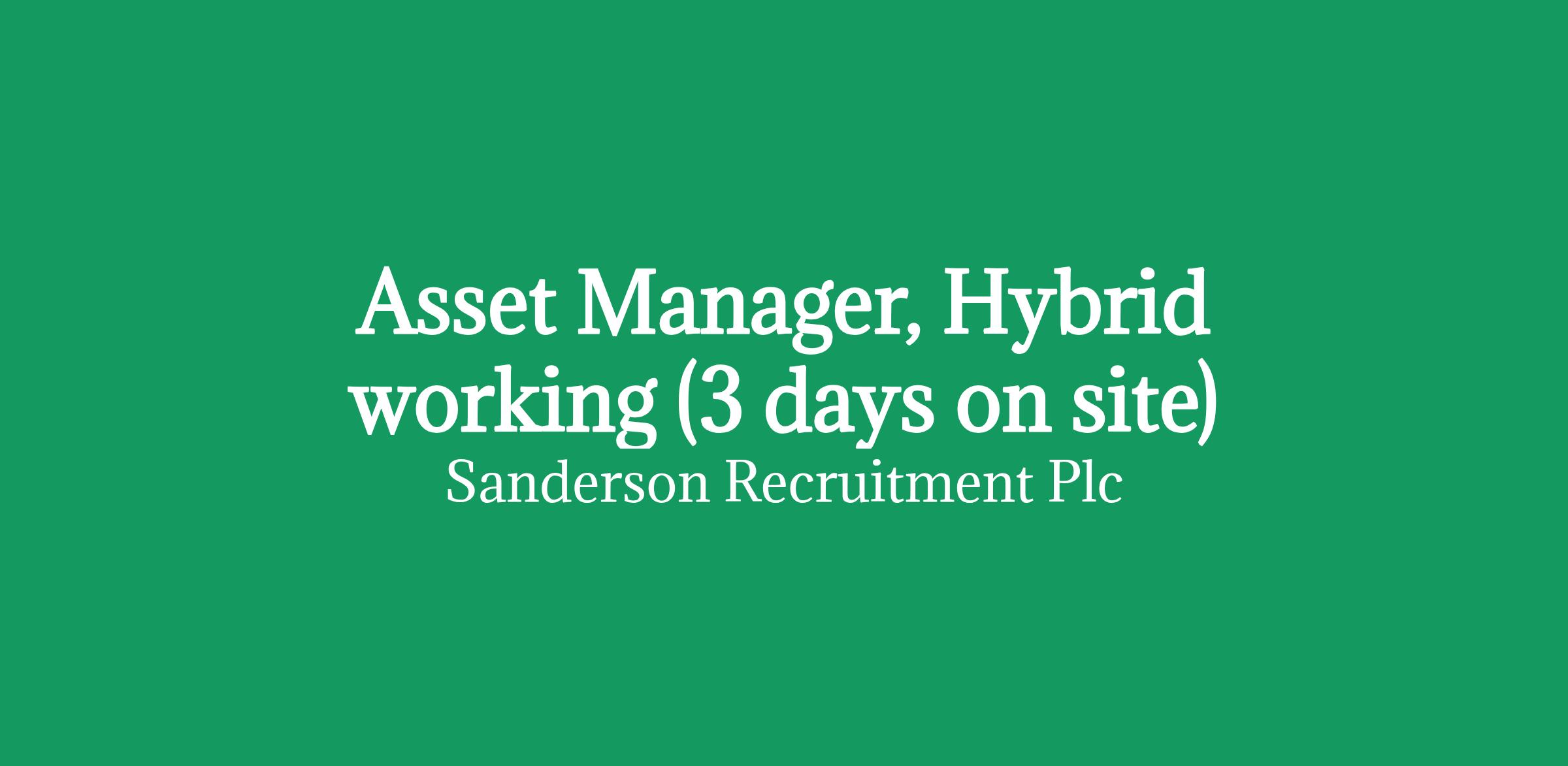 Asset Manager, Hybrid working (3 days on site)