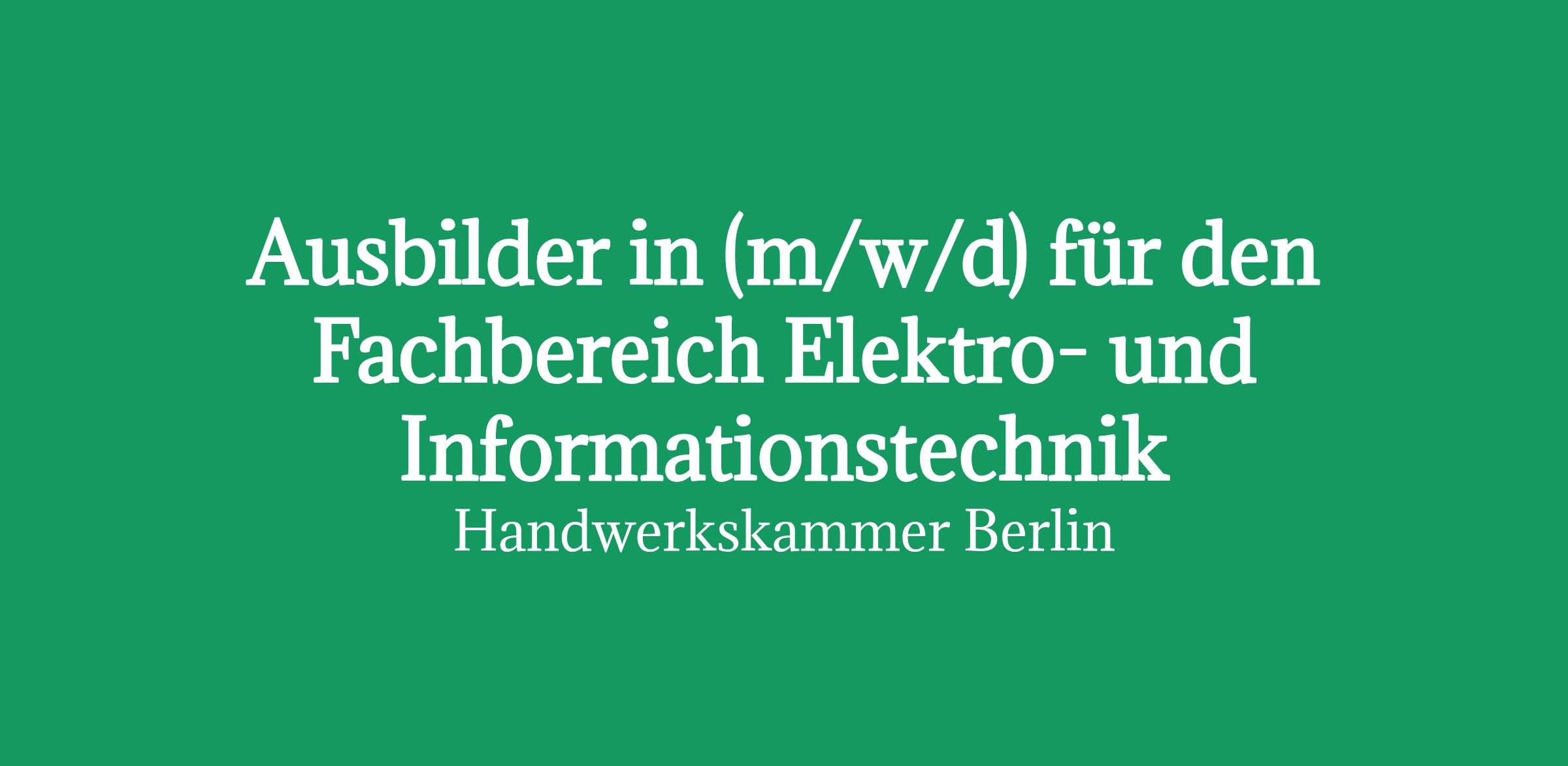 Ausbilder in (m/w/d) für den Fachbereich Elektro- und Informationstechnik in Berlin