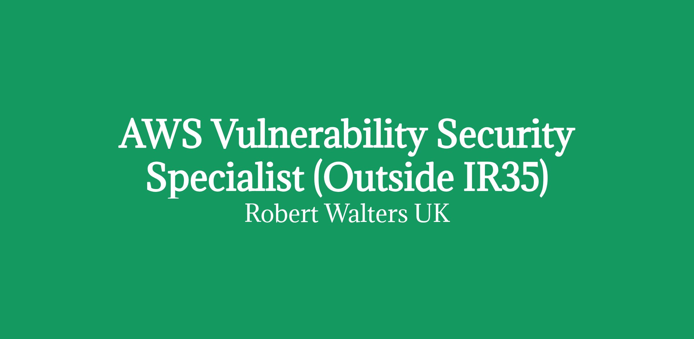 AWS Vulnerability Security Specialist (Outside IR35) - remote (UK citizen required). This role focuses on leading vulnerability management for AWS environments within a security platform built with modern AI to support decision making.