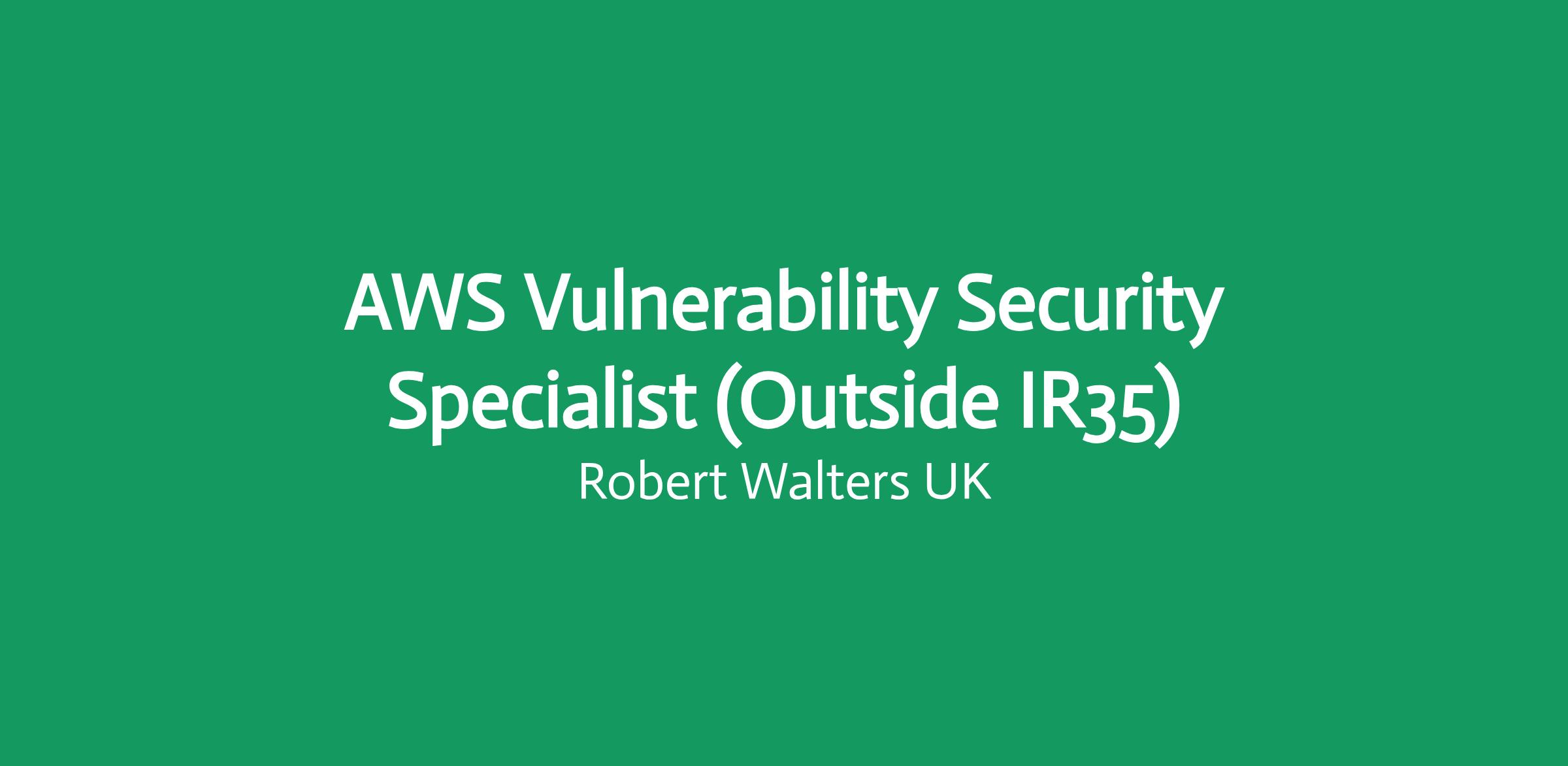 AWS Vulnerability Security Specialist (Outside IR35) - remote (UK citizen required). This role focuses on leading vulnerability management for AWS environments within a security platform built with modern AI to support decision making.