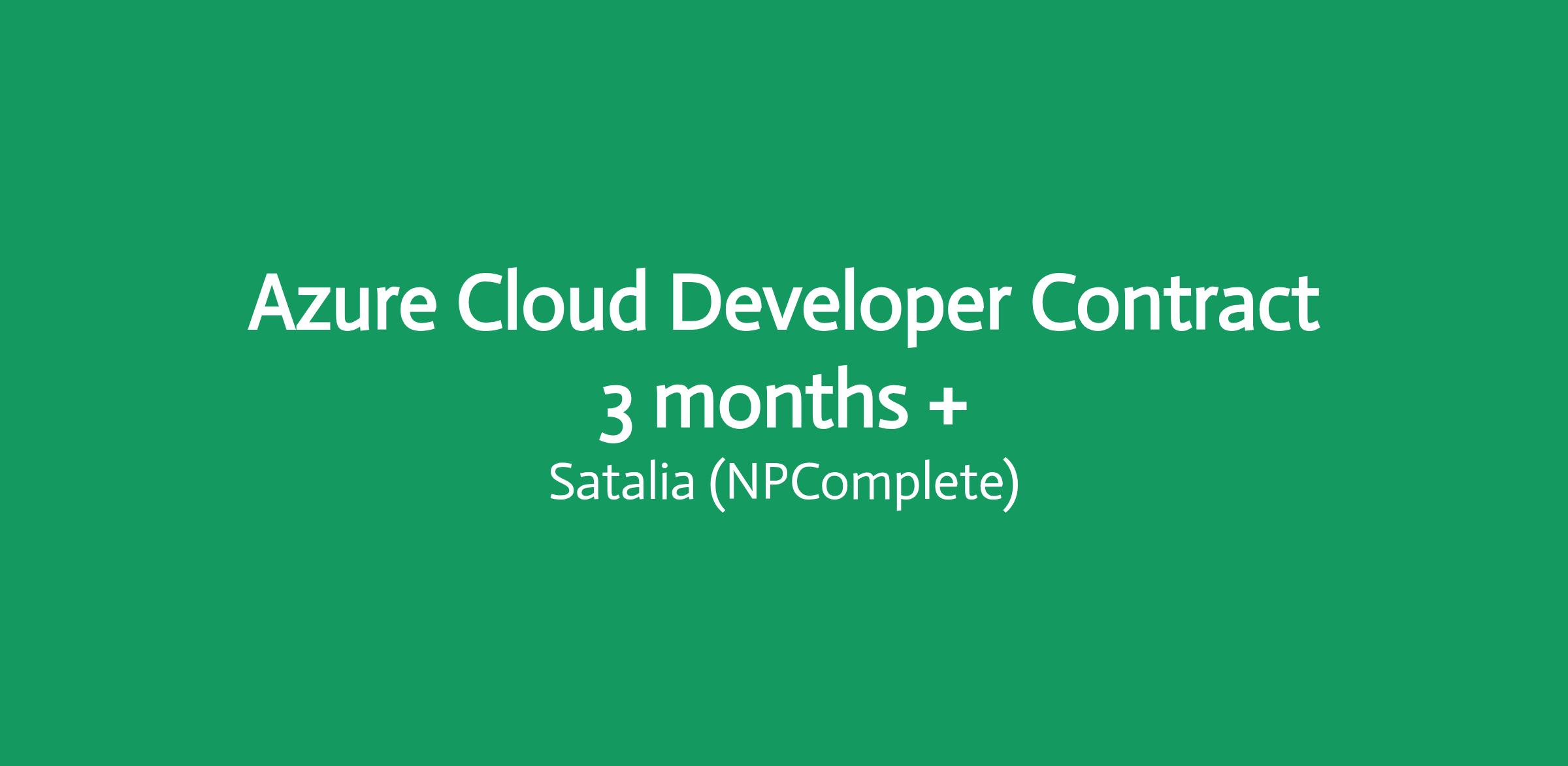 Azure Cloud Developer Contract 3 months +