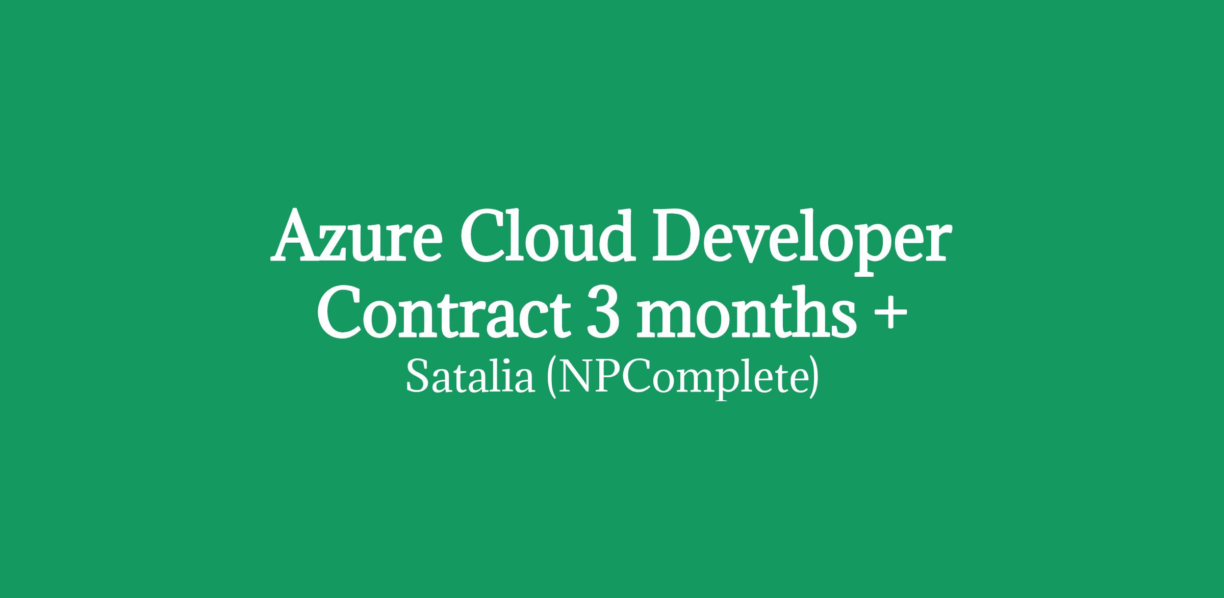 Azure Cloud Developer Contract 3 months +