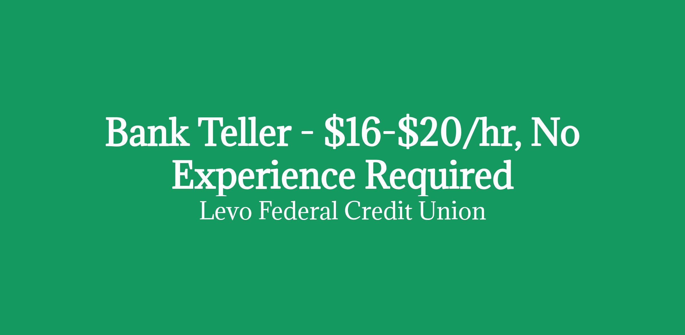 Bank Teller - $16-$20/hr, No Experience Required