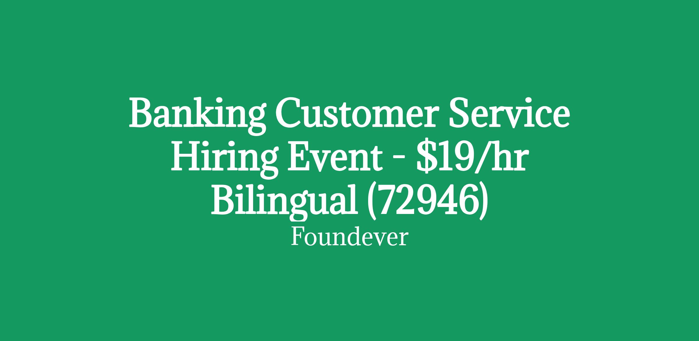 Banking Customer Service Hiring Event - $19/hr Bilingual (72946)