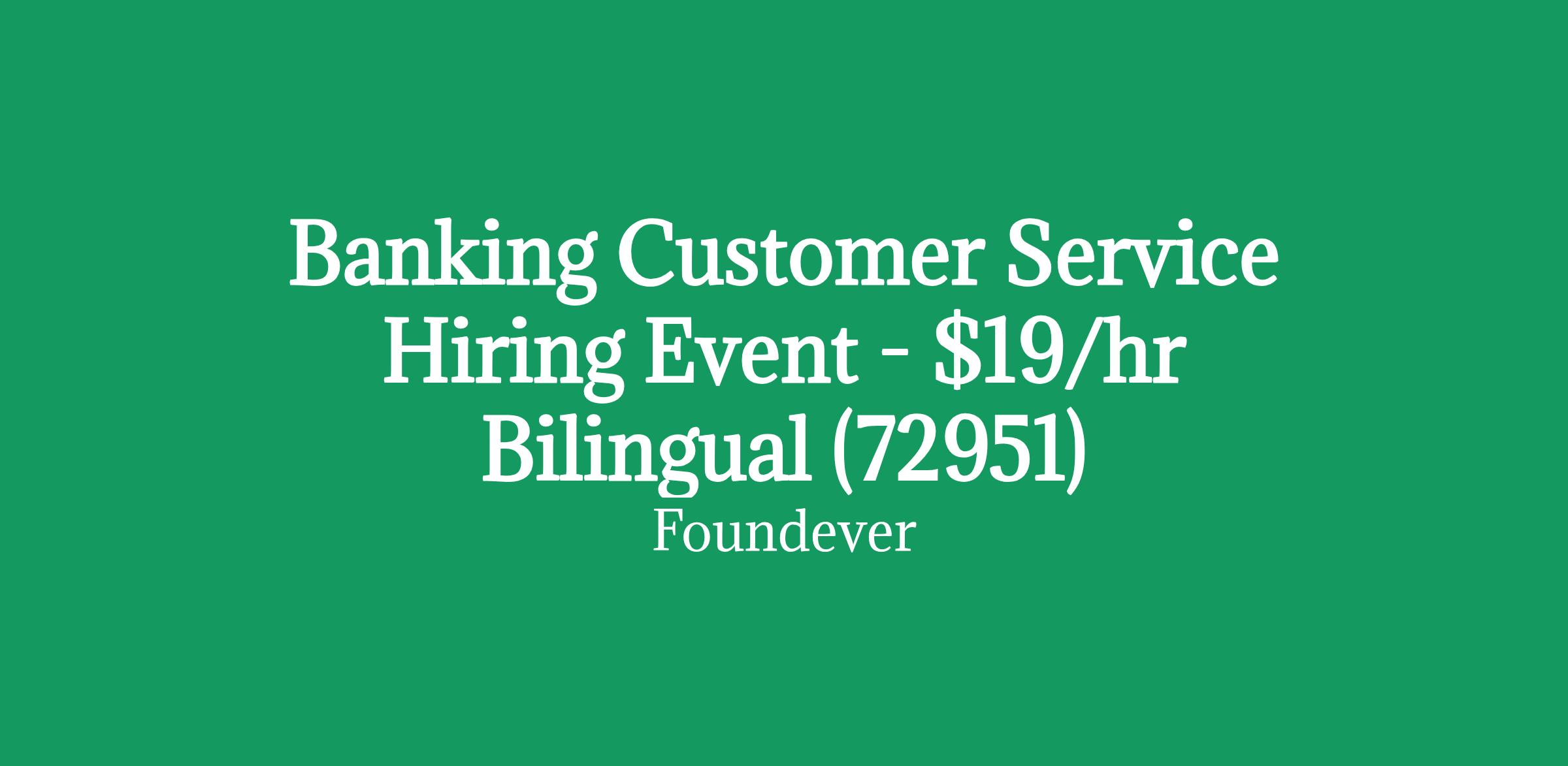 Banking Customer Service Hiring Event - $19/hr Bilingual (72951)