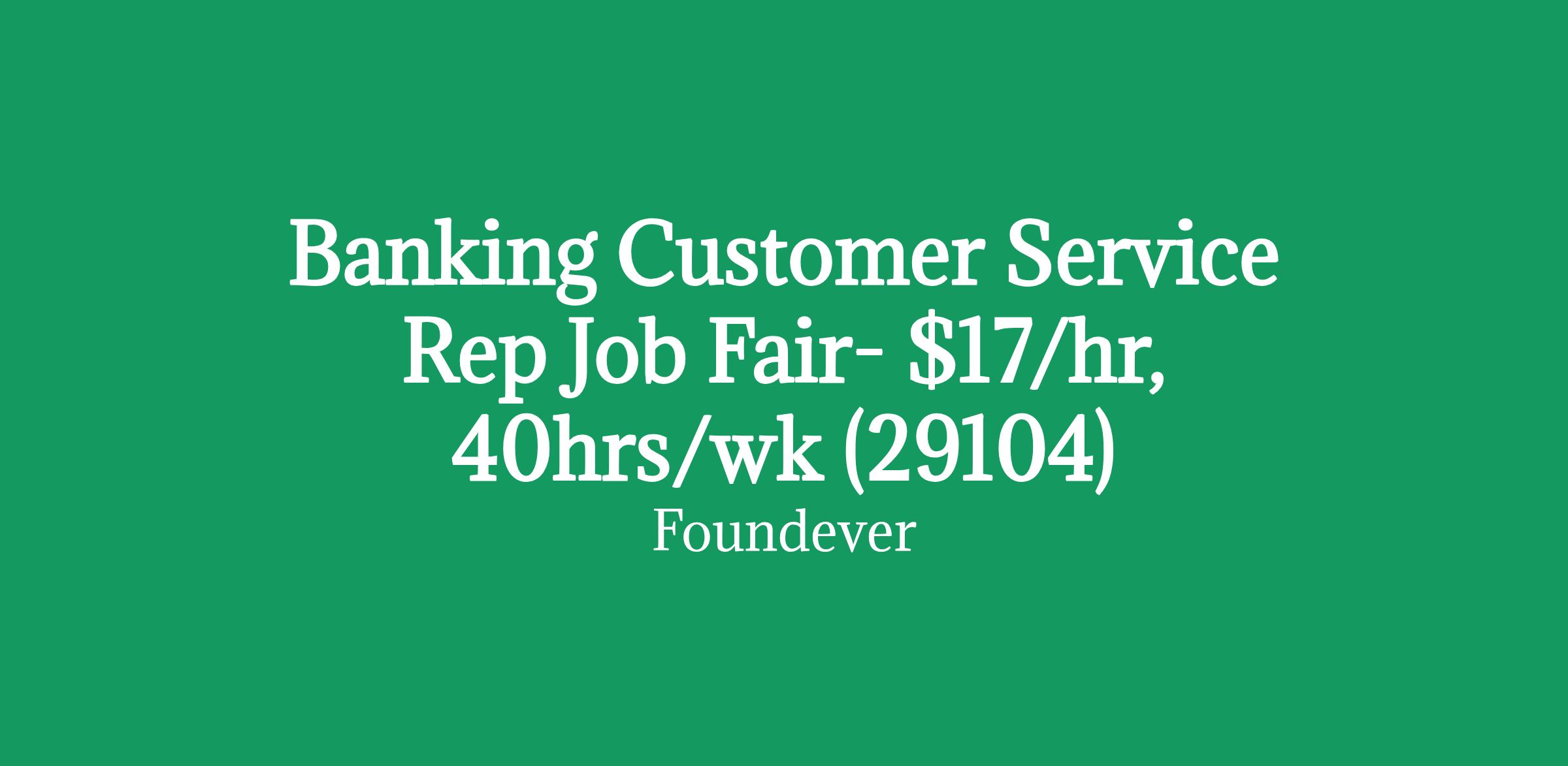 Banking Customer Service Rep Job Fair- $17/hr, 40hrs/wk (29104)