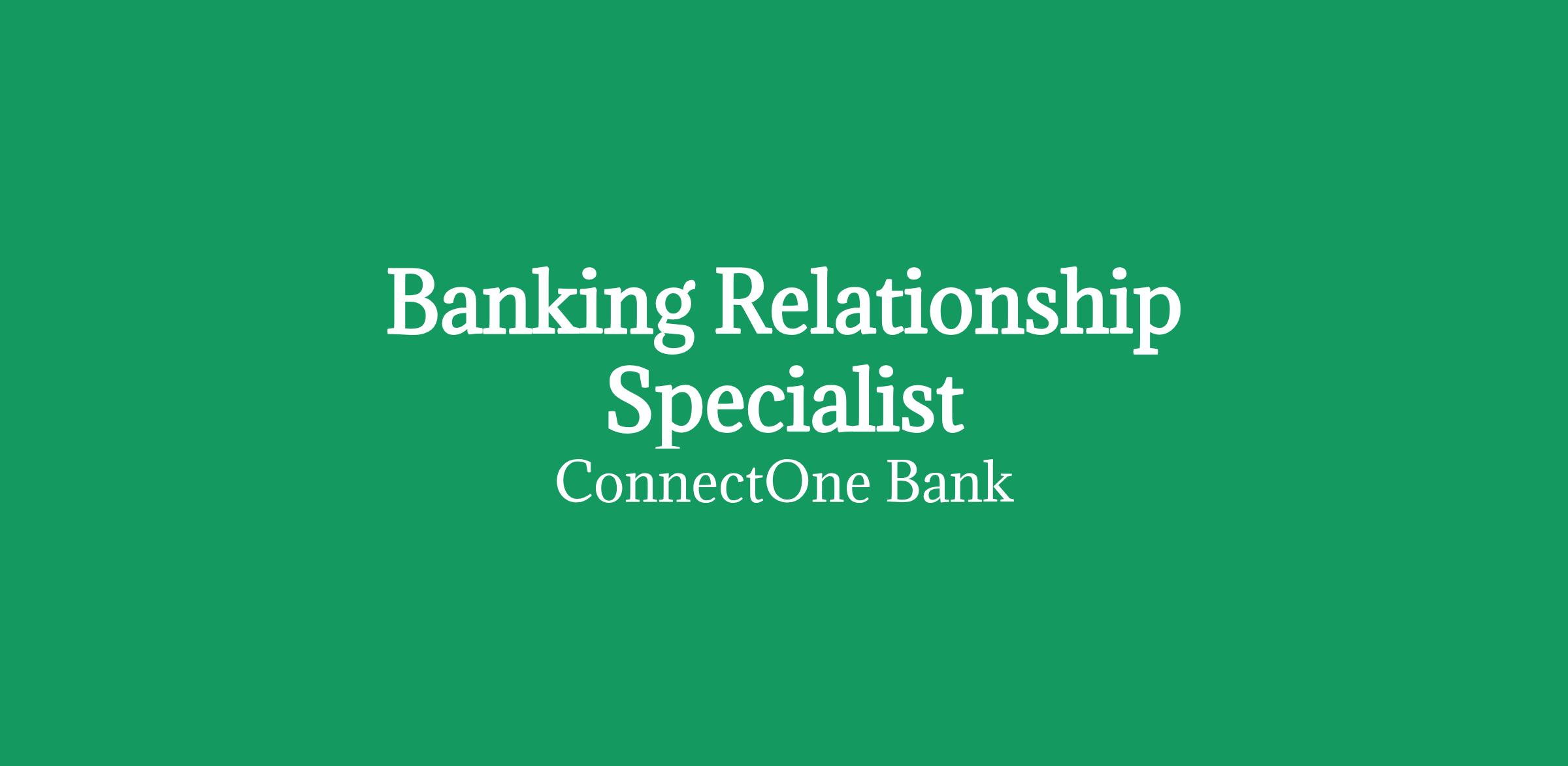About this role Banking Relationship Specialists play a vital role in ConnectOne "Client First" banking experience by acquiring, retaining, and expanding banking relationships of both the business and consumer clients while demonstrating the ConnectOne Culture.