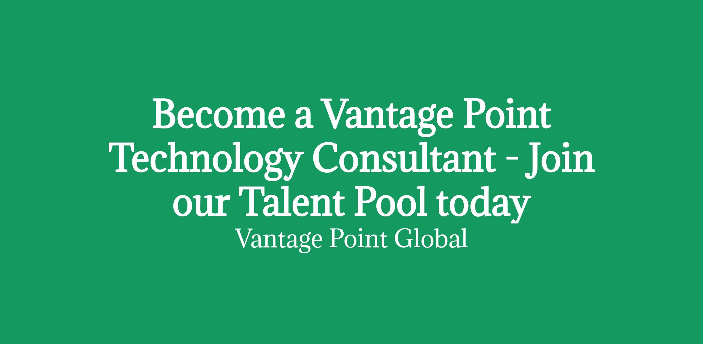 Overview Do you have a passion for innovation and technology? Can you combine this with problem-solving and teamwork skills? Then this could be the perfect opportunity to become a Vantage Point Technology Consultant.