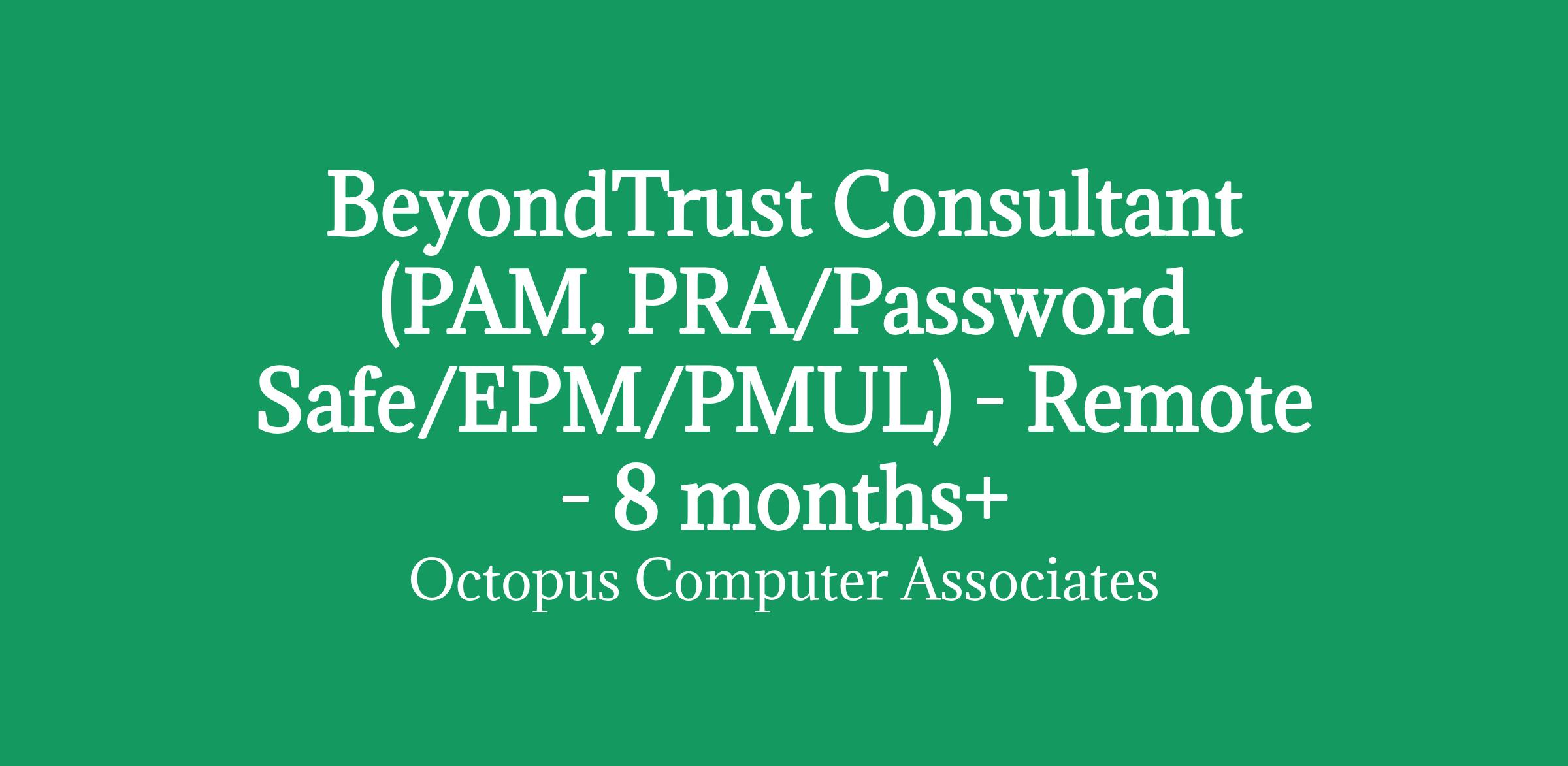 BeyondTrust Consultant (PAM, PRA/Password Safe/EPM/PMUL) - Remote - 8 months+/RATE: £455-480 per day inside IR35