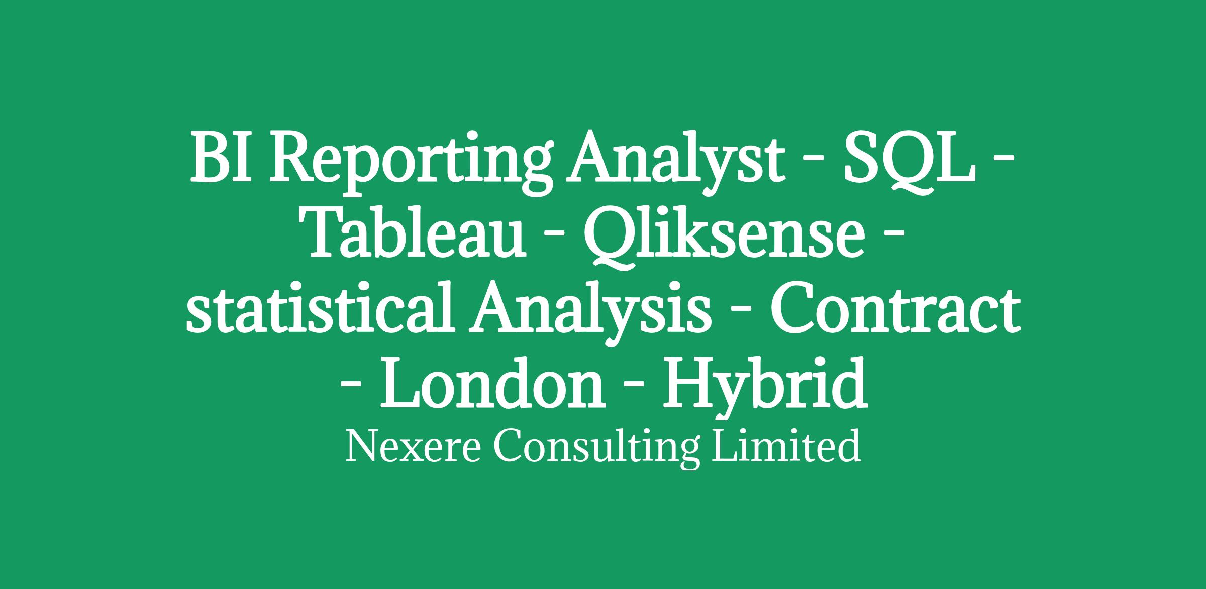 BI Reporting Analyst - SQL - Tableau - Qliksense - statistical Analysis - Contract - London - Hybrid