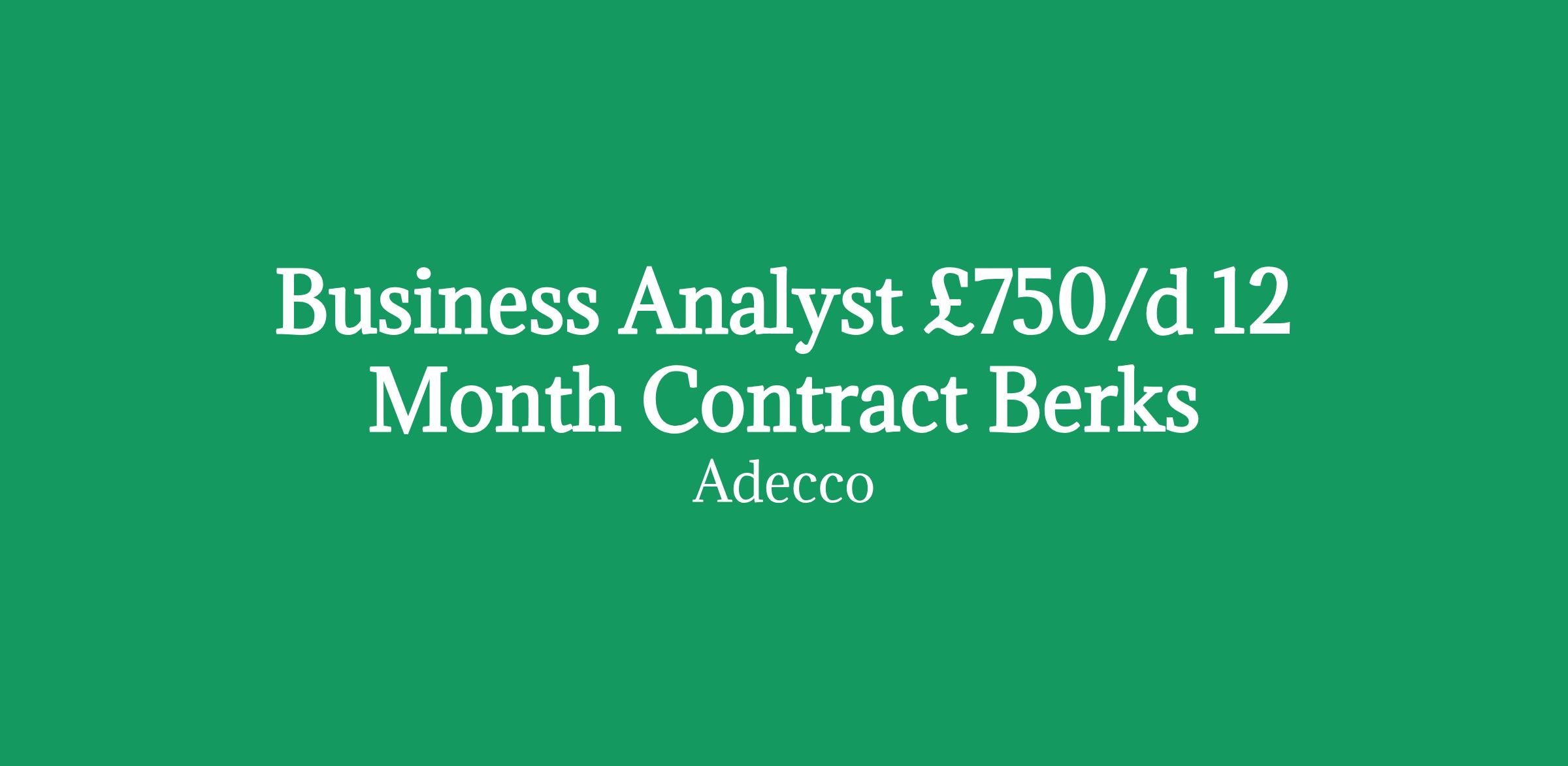 Business Analyst £750/d 12 Month Contract Berks