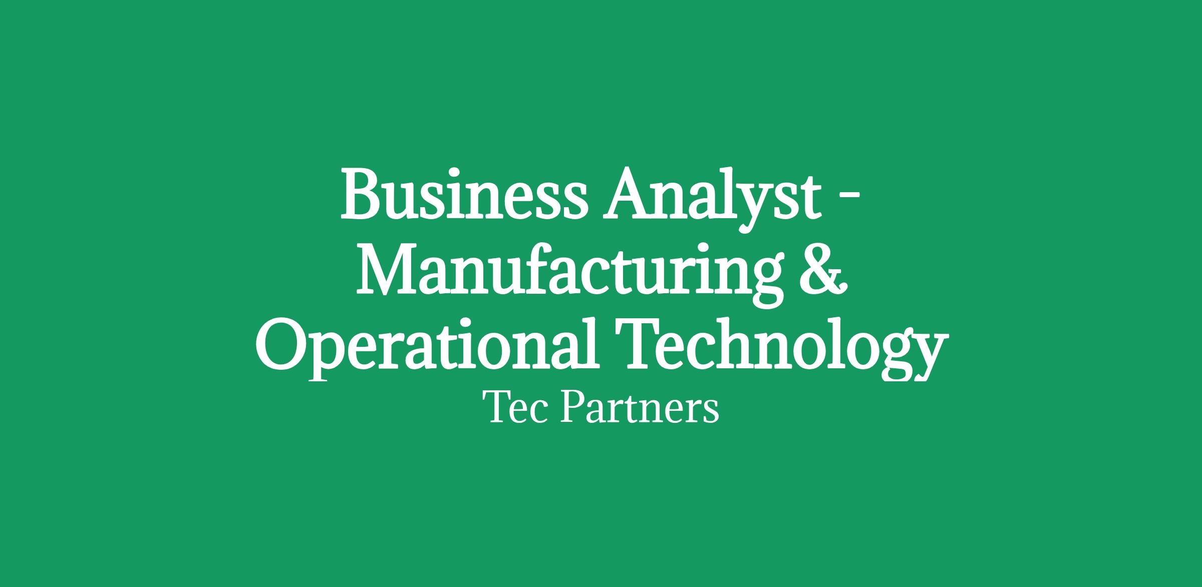 Position: Business Analyst - Manufacturing & Operational Technology