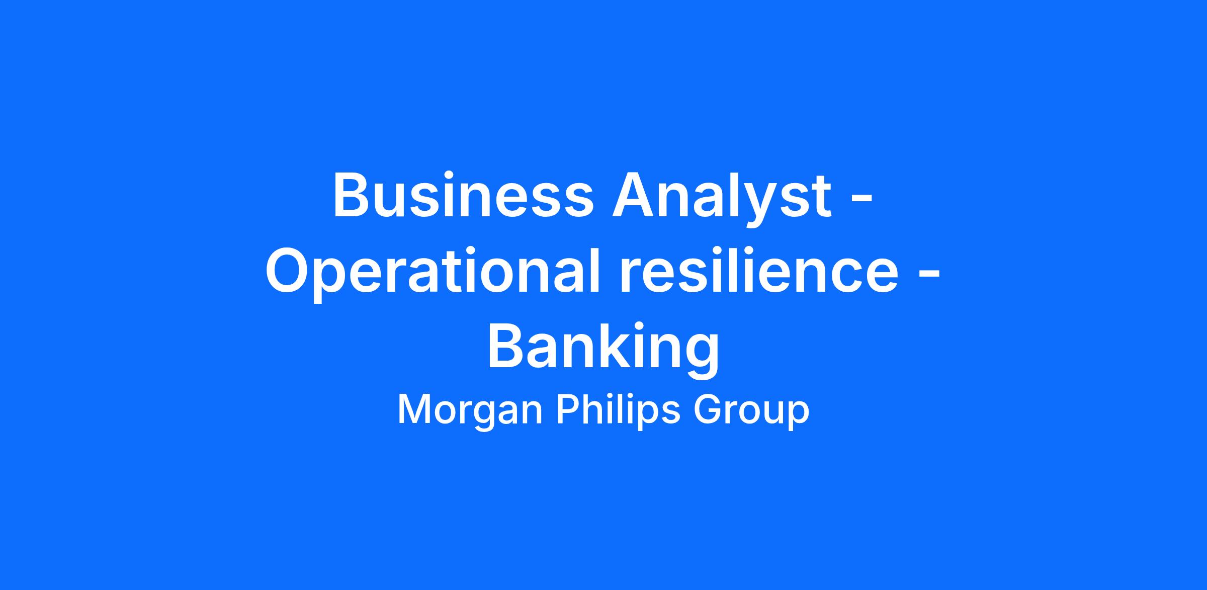 Senior Business Analyst - Operational Resilience - 3-month contract role initially