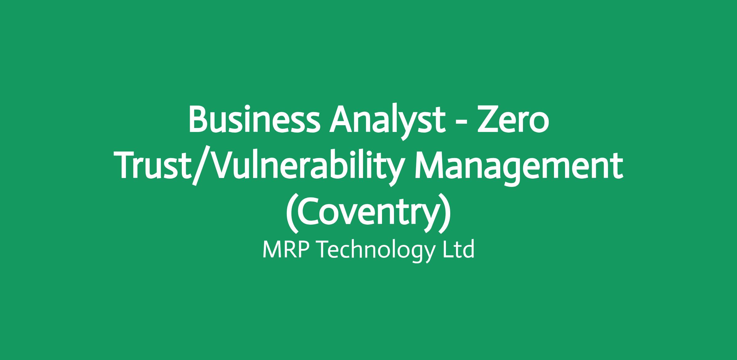 Business Analyst - Zero Trust/Vulnerability Management (Coventry) MRP Global are pleased to be working with a global technology services & consulting company to find a highly skilled Business Analyst with experience in Zero Trust & Vulnerability Management.