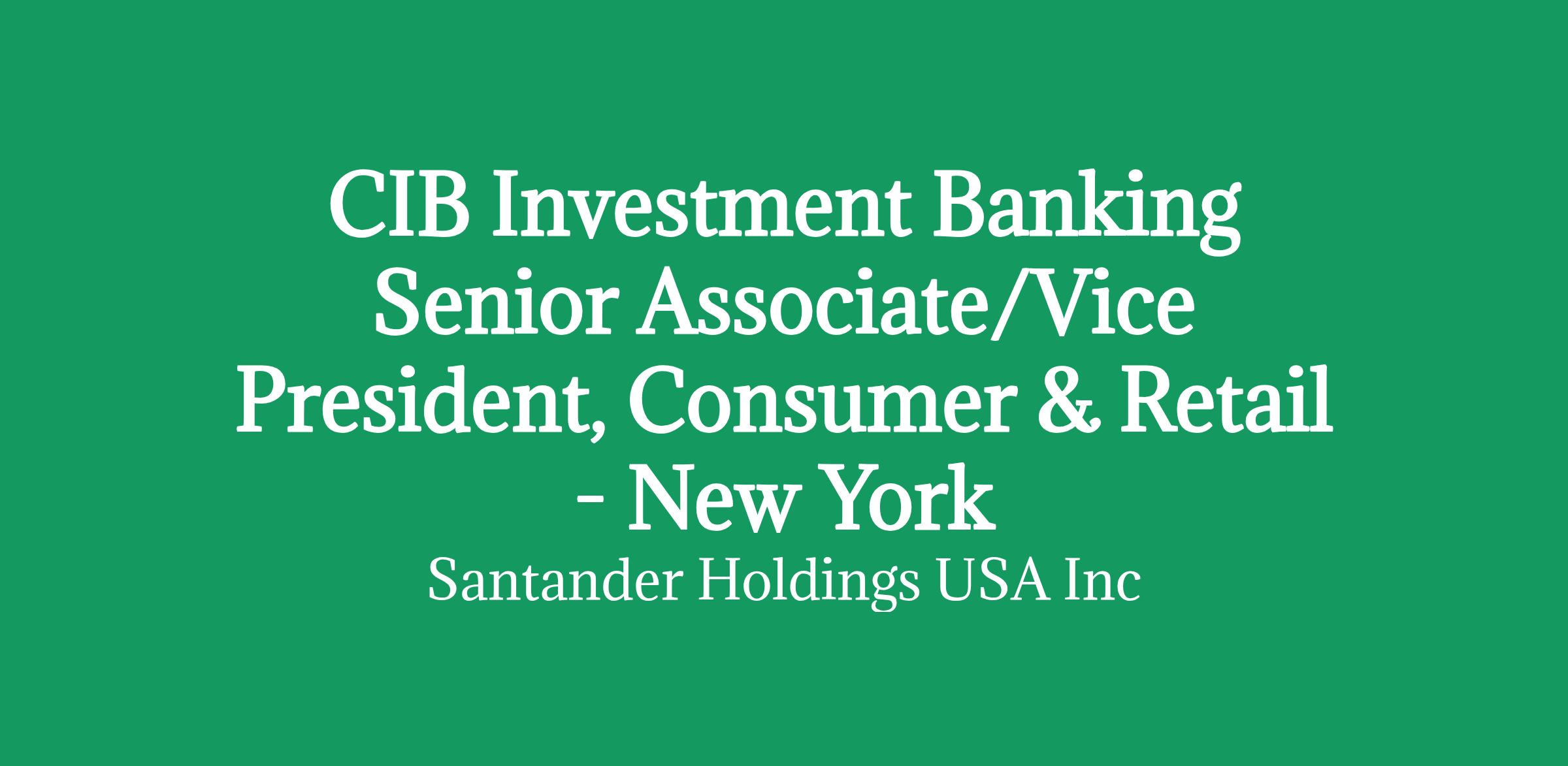 CIB Investment Banking Senior Associate/Vice President, Consumer & Retail - New York