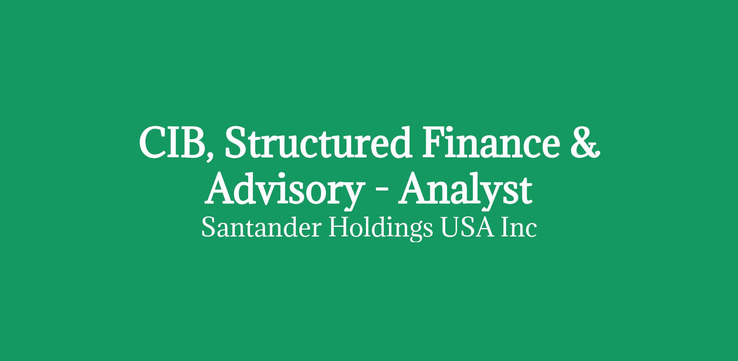 CIB, Structured Finance & Advisory - Analyst