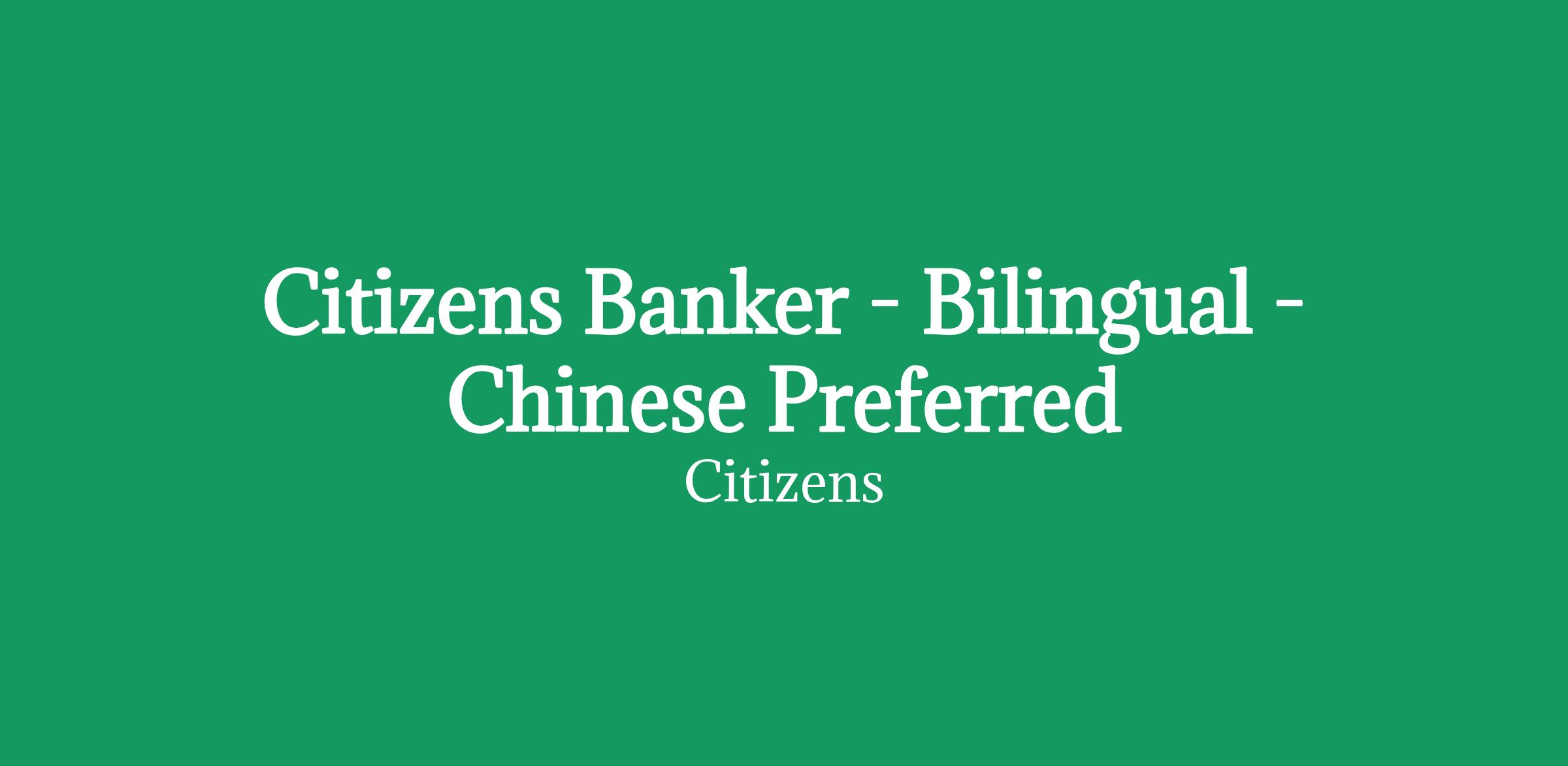 Citizens Banker - Bilingual - Chinese Preferred
