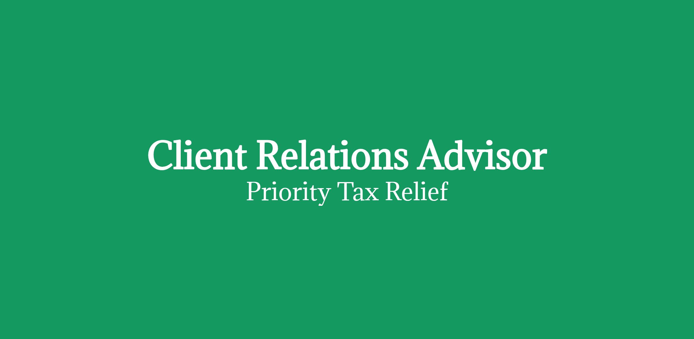 Job Overview:As a Client Relations Advisor (CRA), Tax & Legal Support, you'll be the first point of contact for clients seeking help with their tax challenges, setting the tone for a positive, solution-focused experience. You'll guide clients through our process, answering questions related to IRS notices, tax documentation, payment plans, and more, all while working closely with our experienced tax professionals.