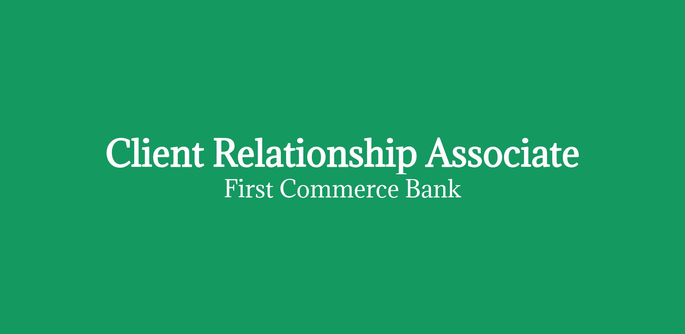 First Commerce Bank is an Equal Opportunity Employer. All qualified applicants receive consideration for employment without regard to race, color, religion, sex, age, disability, protected veteran status, national origin, sexual orientation, gender identity or expression, genetic information or any other characteristic protected by applicable law.