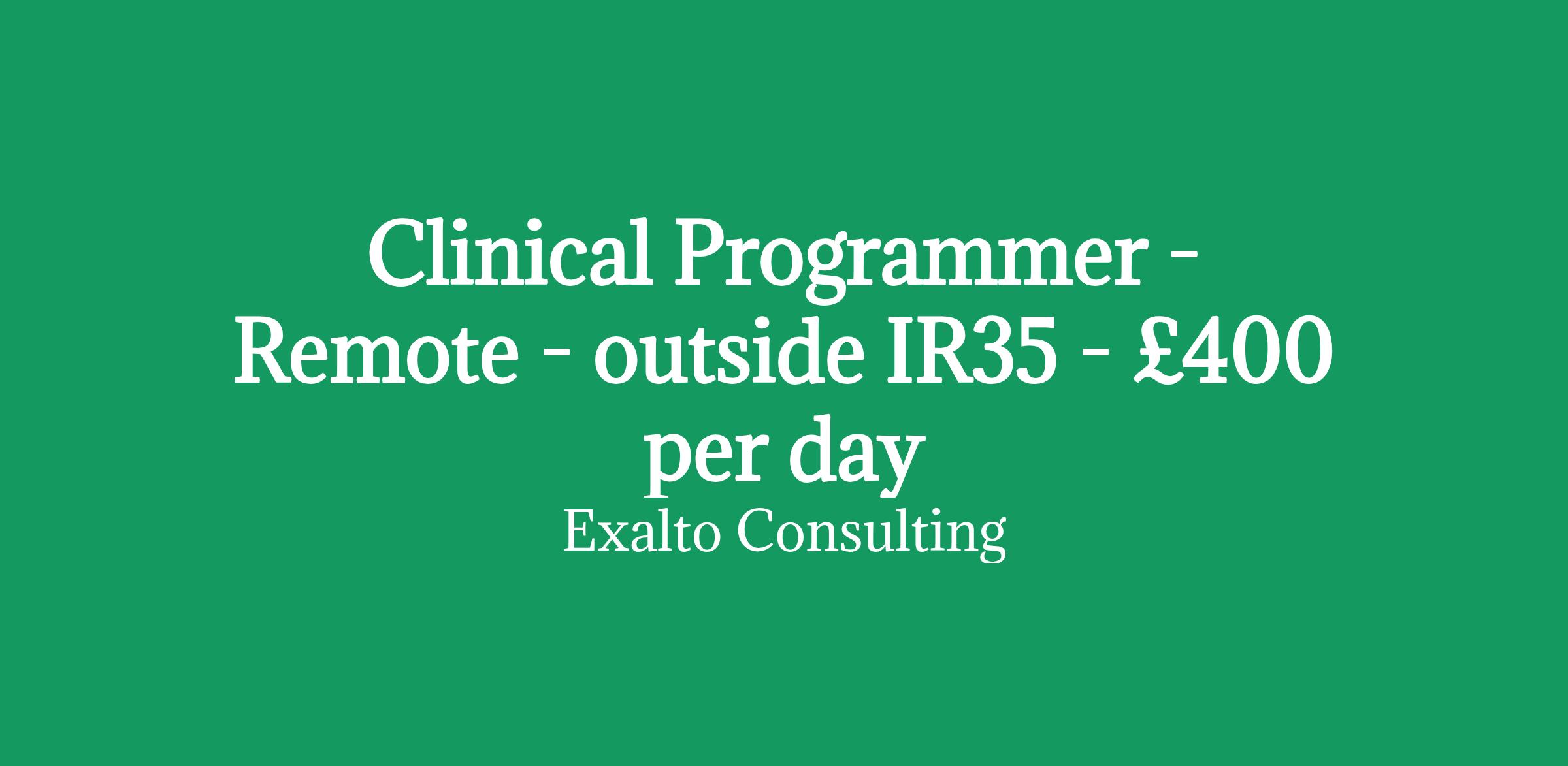 Clinical programmer - remote working - outside IR35 - £400 per day