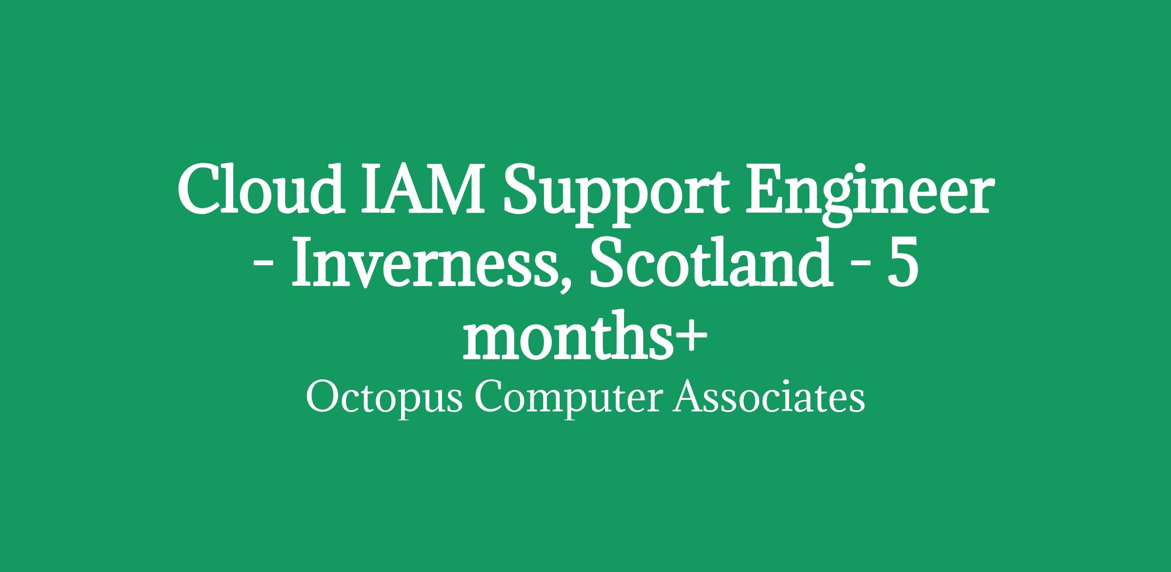 Cloud IAM Support Engineer - Inverness, Scotland - 5 months+/RATE: £437 per day inside IR35