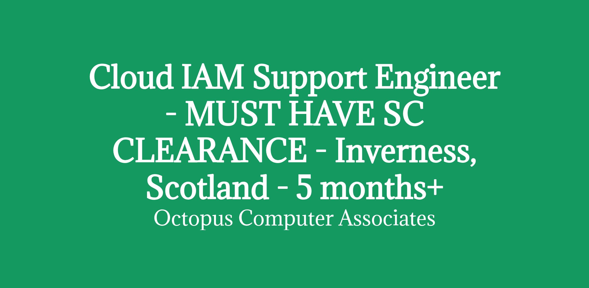 Cloud IAM Support Engineer - MUST HAVE SC CLEARANCE - Inverness, Scotland - 5 months+/RATE: £437 per day inside IR35
