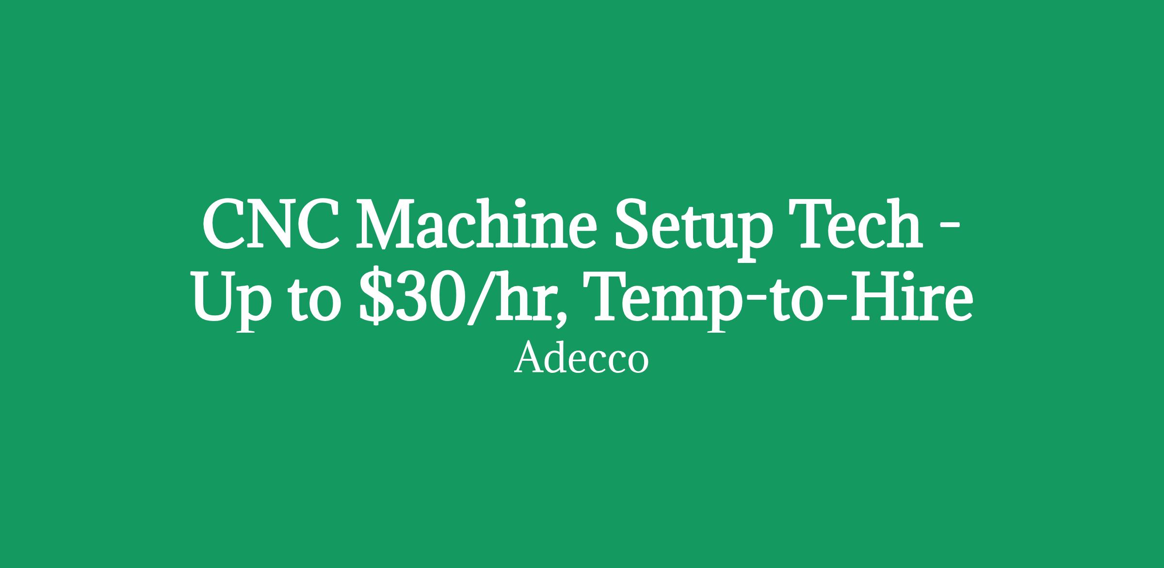 CNC Machine Setup Tech - Up to $30/hr, Temp-to-Hire