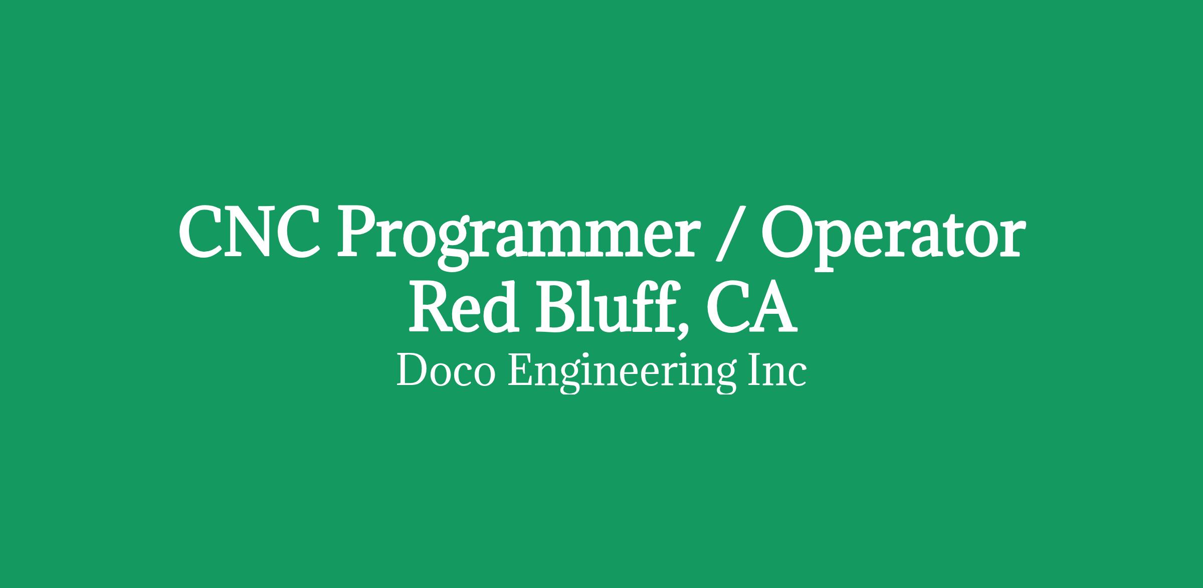 Due to continued growth and strong demand for custom automation equipment, Doco Engineering is expanding its machining capacity and hiring an additional CNC Programmer / Operator.