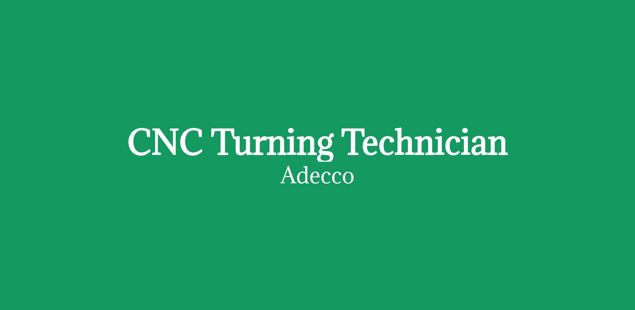 Adecco is hiring CNC Turning Technicians to support operations in a state-of-the-art facility. This role involves operating CNC turning equipment and inspecting precision components.