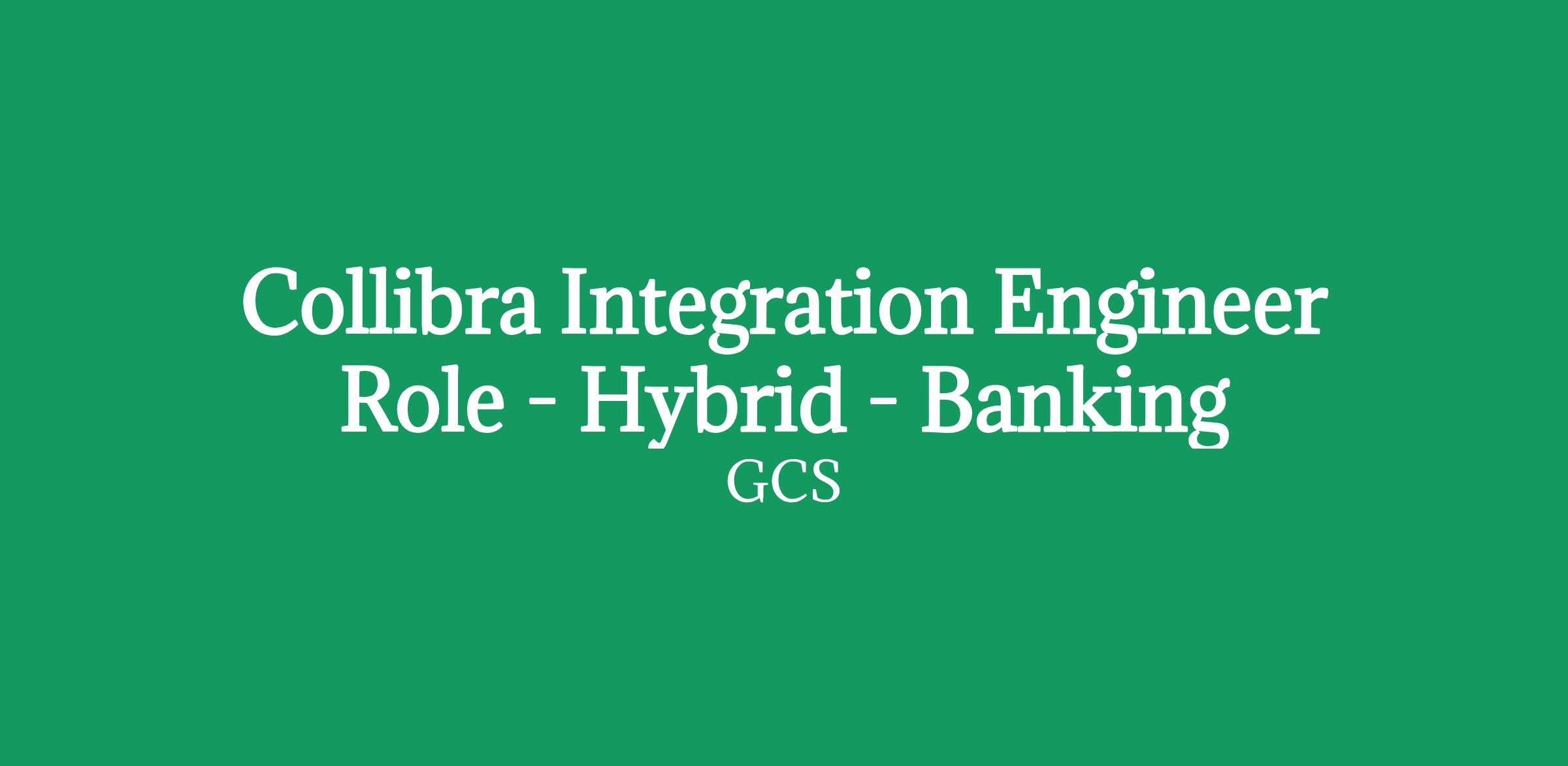 Collibra Integration Engineer Role - Hybrid - Banking