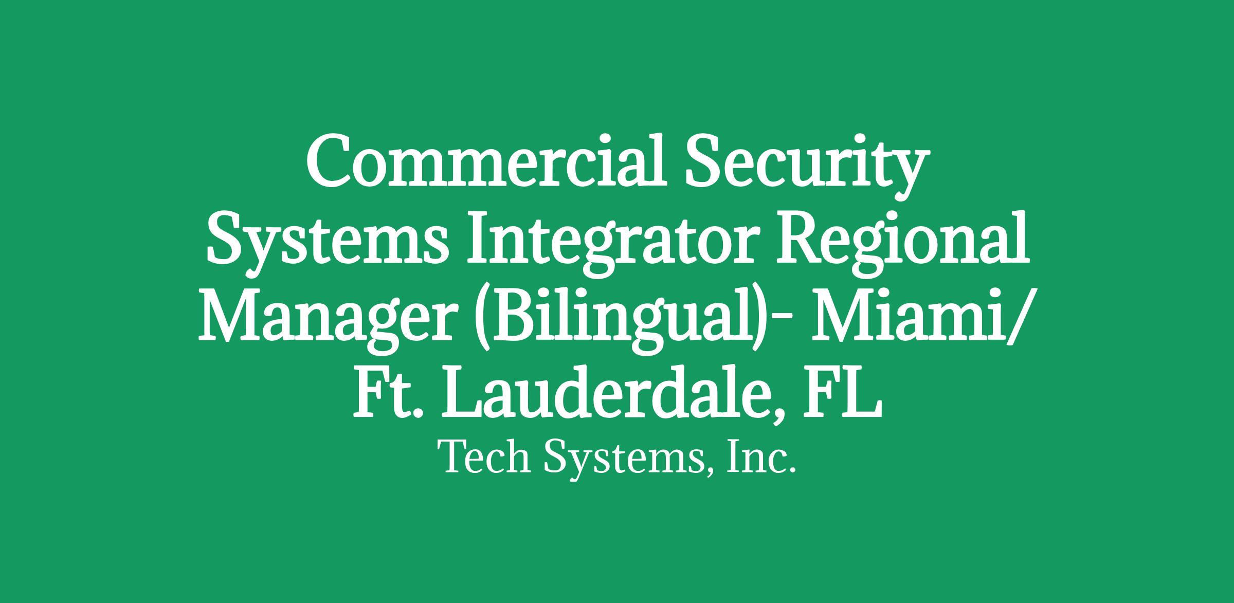 Commercial Security Systems Integrator Regional Manager (Bilingual)- Miami/ Ft. Lauderdale, FL