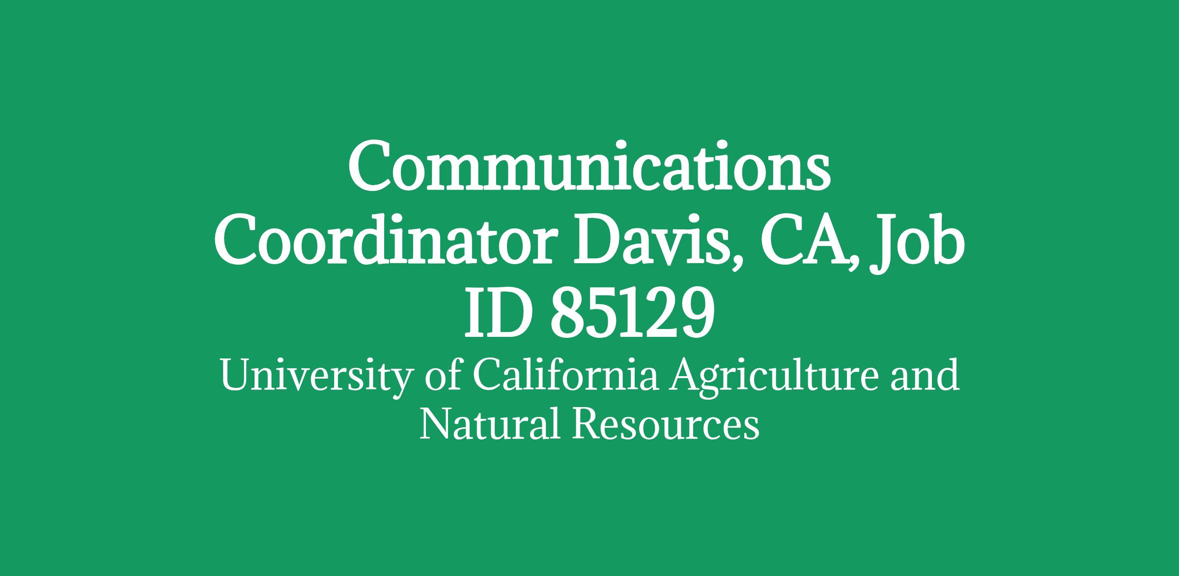 Communications Coordinator Davis, CA, Job ID 85129