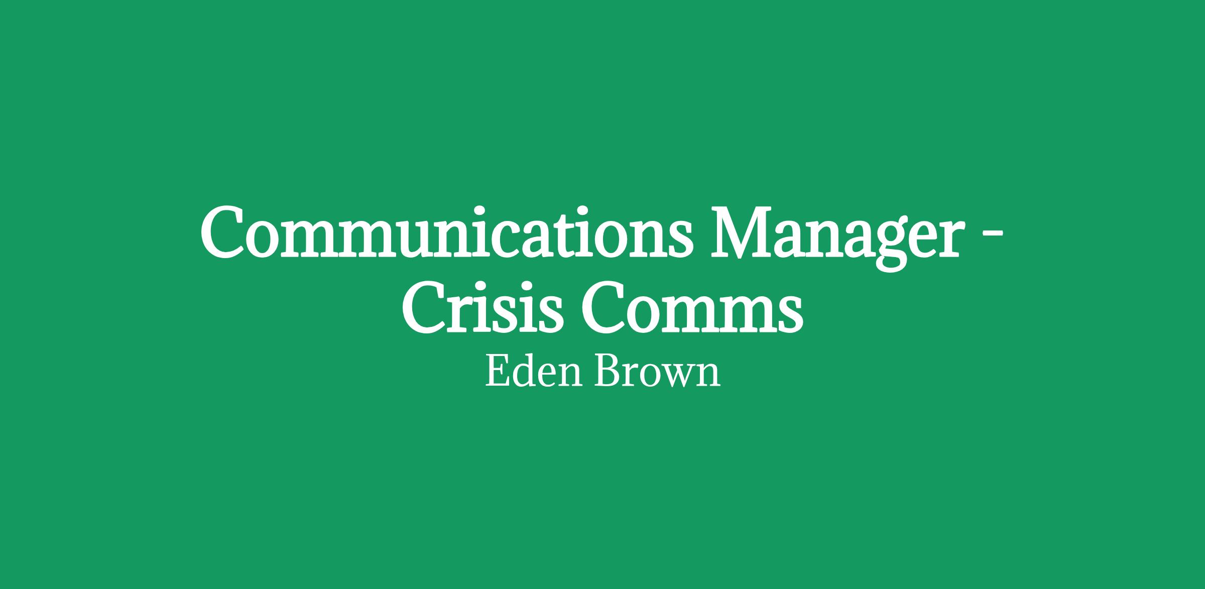 Communications Manager - Crisis Comms