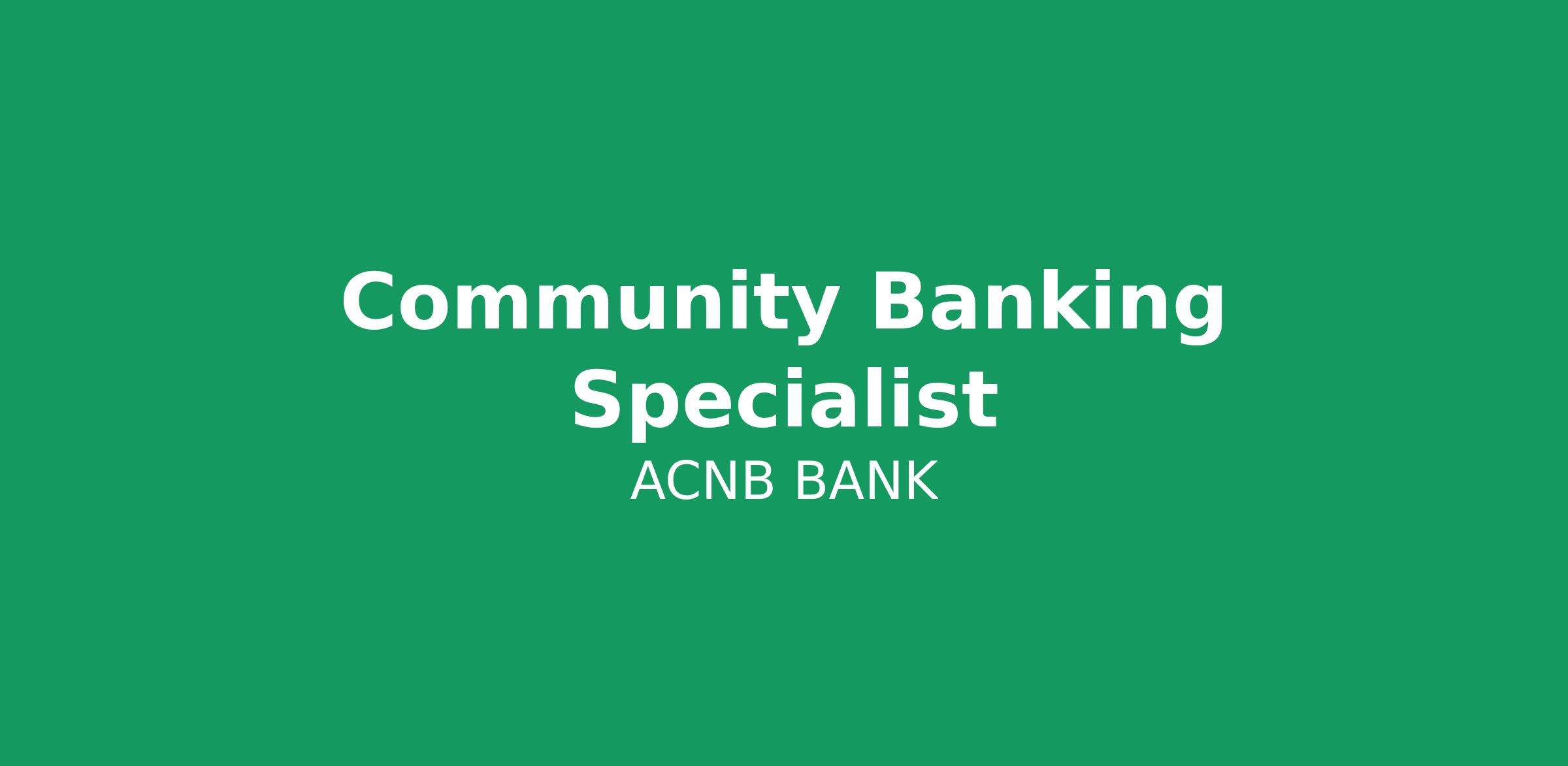 Join our team at ACNB Bank as a full-time Community Banking Specialist at our Market Place Office in Westminster and play a pivotal role in shaping the financial well-being of our customers and community. We're looking for someone with banking experience, a passion for relationship-building, and the ability to deliver results.
