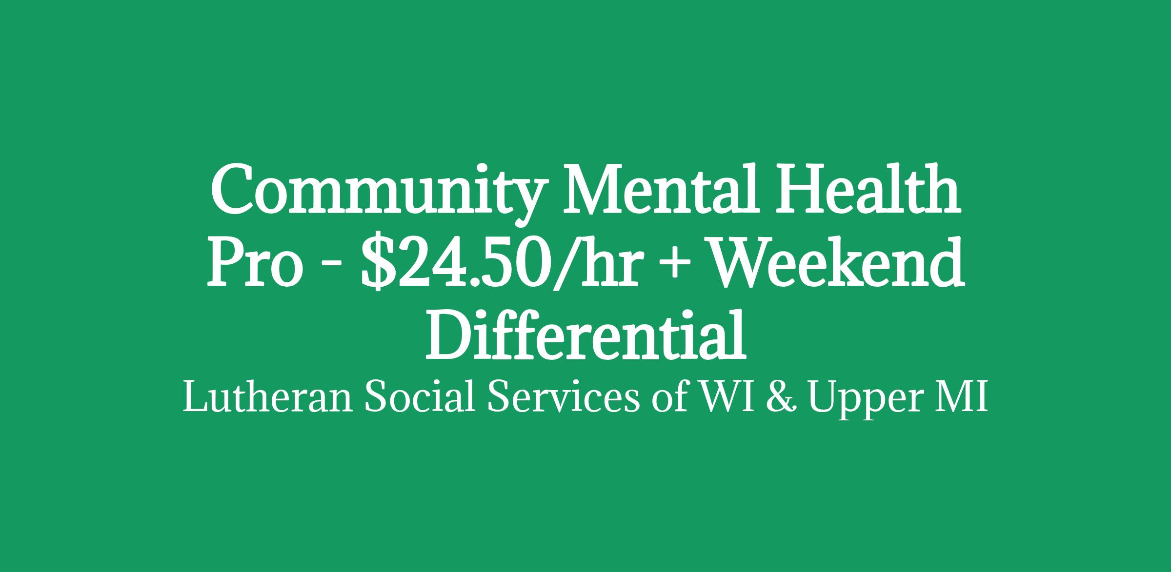 Community Mental Health Pro - $24.50/hr + Weekend Differential