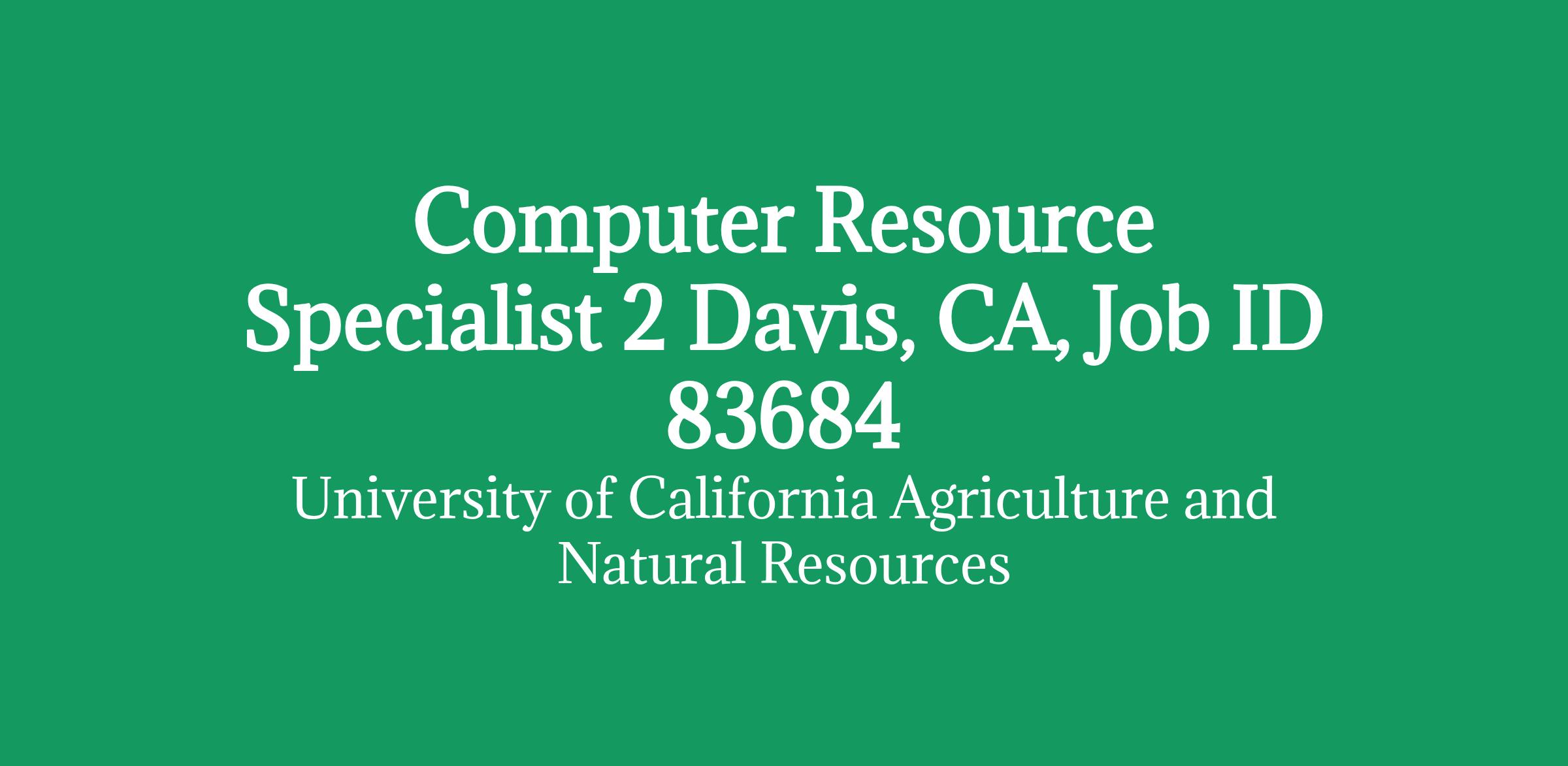 Computer Resource Specialist 2 Davis, CA, Job ID 83684