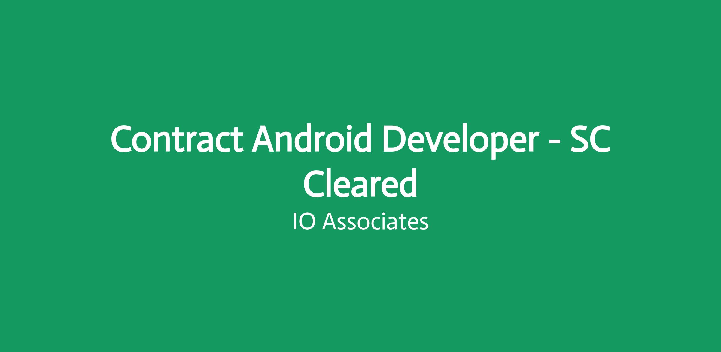 iO Assocites are on the lookout for an SC Cleared Android Developer to join a Consultancy client of iO's on a Contract basis.
